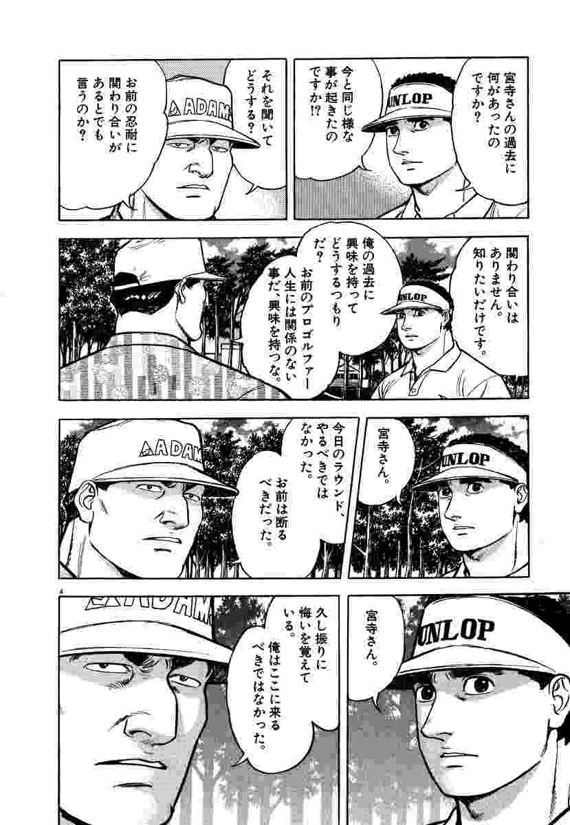 ▼第1話/沖田と宮寺▼第2話/誇りあるアプローチ▼第3話/超越のプロゴルファー▼第4話/兄弟弟子▼第5話/棚ボタ▼第6話/弱気と勇気▼第7話/ライン▼第8話/冒険心▼第9話/欲の塊●登場人物/沖田圭介(鹿沼カントリークラブ初のプロゴルファー)、堀田(代議士ながらハンディ1の腕の持ち主)、小川(堀田と組み、賭けゴルフで荒稼ぎしている)、宮寺(堀田、小川と組んでいる元プロゴルファー) ●あらすじ/3人組との賭けゴルフ勝負は9番ロングホールに突入。だが、度重なる小川の卑劣な行為に沖田の怒りは爆発寸前に。そんな沖田に対し、敵であるはずの宮寺は、とにかく耐えるよういさめる。その宮寺の態度に、なにやらいわくを感じた沖田は、宮寺の過去に興味を抱く…(第1話)。▼9番ロングホール、沖田の第3打はグリーンエッジからのアプローチとなる。相手チームの宮寺はすでにカップ横に第3打をつけ、バーディは確実。ハンディを与えている沖田は、この第3打を直接放り込まなければこのホール負けてしまう。そんな沖田の第3打が、ピンに向かう…(第2話)。 ●本巻の特徴/初めて本格的な賭けゴルフに挑む沖田。相手のひとり、宮寺の意外な過去が明らかになる。