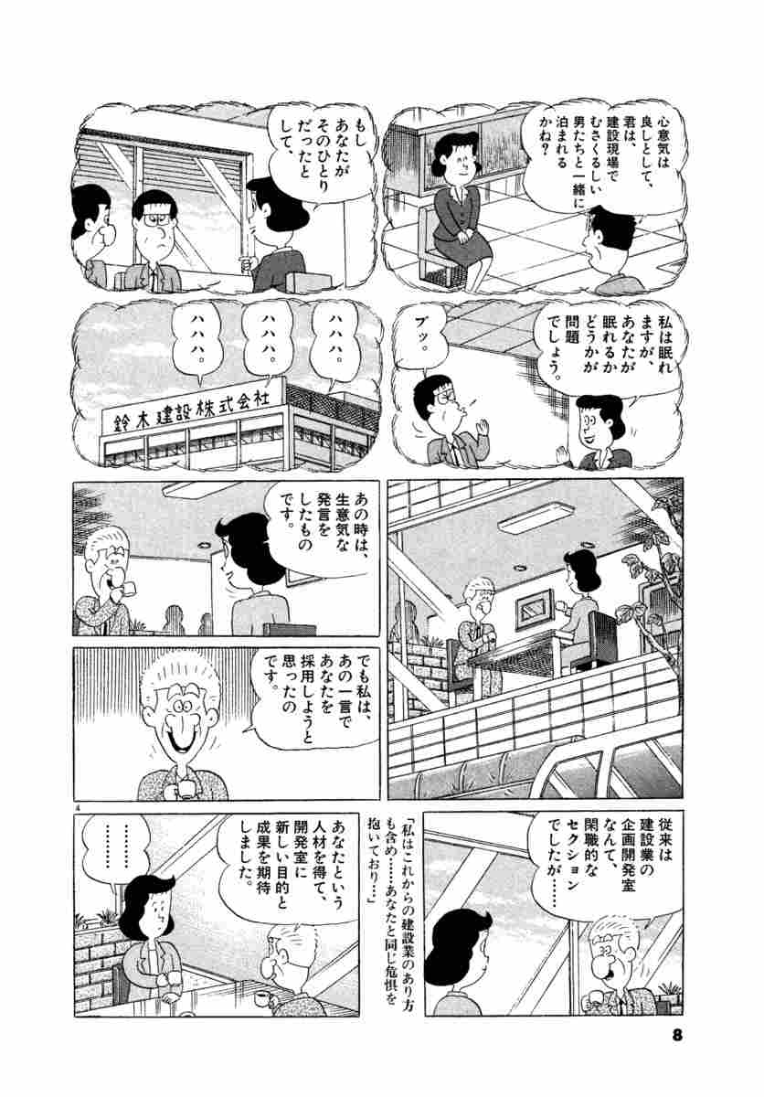 ▼第1話/赤ずきんちゃんて誰?▼第2話/事前の名手▼第3話/世紀末勝負▼第4話/世紀末から新世紀へ▼第5話/踊る大社長▼第6話/ナイス・カレイ▼第7話/我が人生の師…▼第8話/タフでハードなネゴシエーター しょの1▼第9話/タフでハードなネゴシエーター しょの2●登場人物/浜崎伝助(鈴木建設の元「ペケ」社員。現在、鈴建子会社の鈴建リース社員)、鈴木一之助(鈴木建設社長、伝助の影響で釣りバカに)、佐々木和男(伝助が所属していた営業三課の元課長。現在、鈴建子会社の鈴建リース社長)●あらすじ/鈴建リースに合併を持ちかけてきたマース・コーポ社、その支配人・南雲さんは、かつて鈴木建設の社員だった! 街で再会したスーさんと南雲さんは、昔話に花を咲かせる。鈴木家を訪ねてきたハマちゃんたちに合併の話を聞いたスーさんが、思いついた名案とは…(第1話)。▼南雲さんがマース社の支配人であることを知らないスーさんは、彼女を海外市場調査部の特別顧問として招こうと思いつく。その会談の場を、内房でのイシダイ釣りとしたスーさんは大張り切り。鈴建リース一行にも、素晴しい人材を招くことになったと自慢気に伝えるのだが…(第2話)。●本巻の特徴/鈴建リースとマース・コーポ社の合併交渉もいよいよ大詰め。佐々木さんの一発逆転をかけた交渉の行方やいかに!?