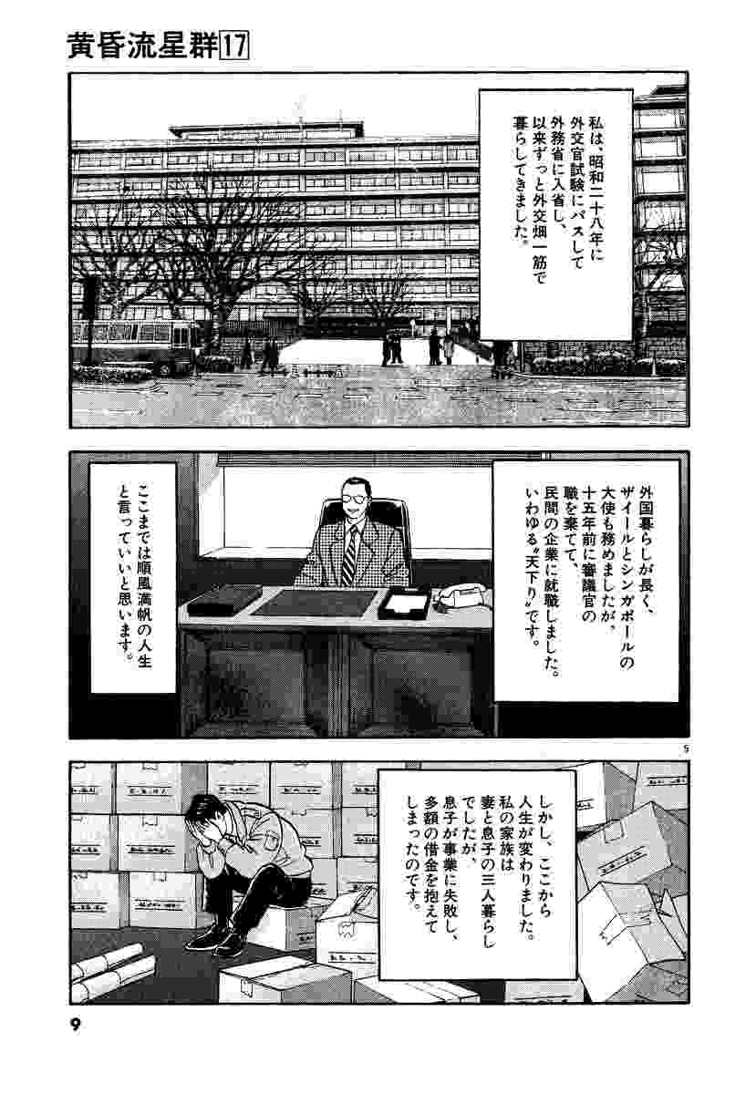 ▼第1~5話『星がりません勝つまでは』●登場人物/片岡俊彦(70歳。元外交官。息子が事業に失敗したために全財産を失い、出身地の老人ホームに)、富田静枝(片岡の国民学校時代のマドンナだった。初期の老人性痴呆症)、後藤完治(片岡の国民学校での同級生。老人ホームで再会した昔のいじめっ子)●あらすじ/元外交官で、超エリート人生を歩んできた片岡は、70歳になり、家庭の事情から老人ホームに入ることになった。片岡が選んだのは、中学生のころまで住んでいた地方都市にある、庶民的なホーム。そこには、国民学校時代のマドンナ・富田静枝も入園していた。痴呆の始まっている静枝に対し、かつての同級生だと名乗った片岡だが……(第1話)。▼第6~9話『星に祈りを』●登場人物/倉品(恐喝をなりわいとする自称ジャーナリスト)、ドジ子(自殺未遂者。倉品に助けられるも記憶を失う)●あらすじ/自称ジャーナリストの倉品は、政治家の周囲をかぎ回り、ネタを拾ってゆすりを行っている。ある夜、倉品の会社に数人の男たちが押し入り、建設会社の重要メモを渡すよう要求。倉品はメモを渡すもニッパーで指を切断される。友人の診療所に駆け込むが切断された指はつながらず、飲んだくれて帰る倉品は、雨の中で首を吊っている女を発見し……(第6話)。●本巻の特徴/老人ホームに入った男を、様々な出会いが待つ!! 男の恋の結末は……!?