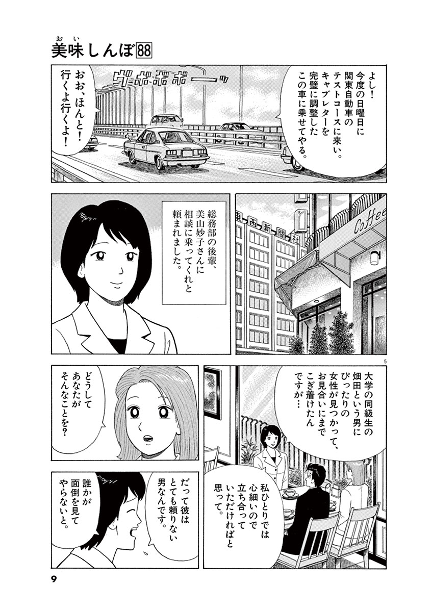 ▼第1話/情熱!のお弁当論▼第2話/味覚の王様のモラル!?▼第3話/こだわり夜食自慢大会!▼第4話/ラーメン・マトリックス▼第5話/器対決!(1~5)●主な登場人物/山岡士郎(東西新聞文化部員。膨大な食の知識を持つ。東西新聞の壮大な企画「究極のメニュー」の作成を担当。ゆう子と結婚し、双子の父に)、山岡ゆう子(旧姓・栗田。東西新聞文化部員。夫の士郎とともに「究極のメニュー」を担当)、海原雄山(超高級料亭「美食倶楽部」を主催する希代の美食家。自分に反抗し家を出た実の息子・士郎を勘当。「至高のメニュー」で対決する)●あらすじ/話題の超高層ビルのテナントに、美食倶楽部の料理人が大勢引き抜かれてしまった。だが、チヨが士郎に相談しても、「雄山の自業自得だ」と取りつく島もない。その士郎は翌日、ある陶芸家から別の相談を受けることに。食器を作る彼に対し、イギリス人の妻はオブジェのような陶芸を作れと迫っているらしく…(第5話・1)。●本巻の特徴/海原雄山が主宰する美食倶楽部に危機が! この機会に、敢えて雄山の真骨頂「器」で対決を挑んだ士郎の真意は…? 表題作「器対決!」ほか、全5話を収録。●その他の登場人物/山岡陽士・遊美(士郎とゆう子の間に生まれた双子)、大原大蔵(東西新聞社社主)、小泉鏡一(東西新聞社取締役編集局長。プライドが高く、自説を曲げない頑固者)、谷村秀夫(東西新聞社編集局次長兼文化部長。温厚な性格で、常に冷静。部下からの人望が厚い)、富井富雄(東西新聞社文化部副部長)