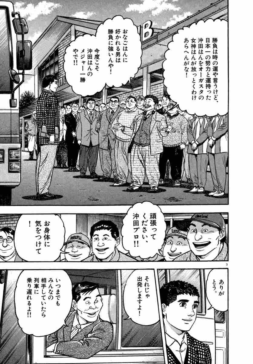 ▼第1話/母なる大地へ▼第2話/口滑りのジョー▼第3話/夢の18番グリーン▼第4話/双子の巨人▼第5話/アガスタ!?▼第6話/バケ物のスウィング▼第7話/縮みゆく体▼第8話/初めての飛距離▼第9話/100とゼロの間●主な登場人物/沖田圭介(鹿沼カントリークラブ初のプロゴルファー)、物部麗子(沖田の恋人)、杉山健三(ゴルフクラブの職人)、笠崎(沖田の先輩だが、まだ鹿沼カントリークラブの研修生)、石倉(鹿沼カントリークラブに出入りしているゴルフ好きのオヤジ)●あらすじ/沖田がアメリカへと旅立つその日。友人やクラブの従業員たちは、沖田を見送ろうと鹿沼カントリークラブのクラブハウス前に集まっていた。笠崎や石原、支配人、石倉といったおなじみの面々をはじめ、キャディたちも激励の言葉をかける。そんな人々の思いを受け止め、全力を尽くして闘うことを誓う沖田。そして舞台はアメリカ・ジョージア州へ。オーガスタ空港で沖田が出会ったのは…?(第1話)▼マスターズ開催まであと1週間。時差ボケを克服すべく散歩に出かけると、沖田は庭先でバスケットボールをする子供たちと出会った。そこには"庭先で球遊びが出来る"ことが日常のスポーツ大国・アメリカの姿があった。子供たちに誘われるまま仲間に加わった沖田は、バスケットで汗を流し始める。すると、子供たちの祖父である老人が声をかけてきて…!?(第2話)●本巻の特徴/新たなドライバーと打法を携え、オーガスタへとやって来た沖田! 夢と試練が待ち受けるアメリカで勝利をつかみ取ることができるのか!?