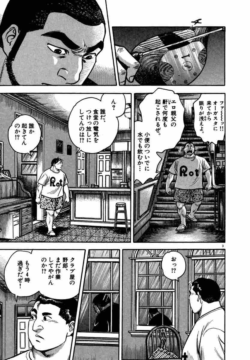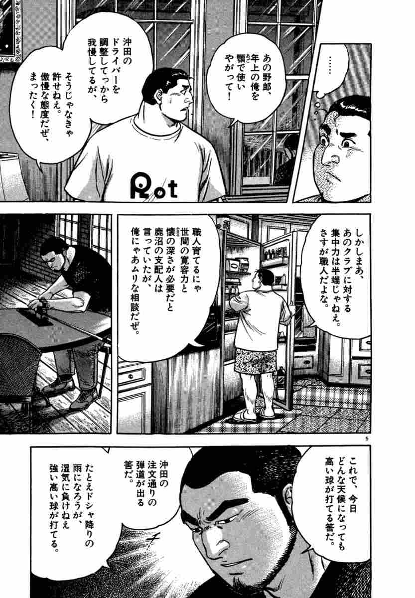 ゴルフに全てを賭けた男・沖田圭介の青春を叙情豊かに綴った物語 ▼第1話/二本のドライバー▼第2話/潰しの天才▼第3話/優先順位▼第4話/カアちゃん▼第5話/悲しい空▼第6話/炎と氷▼第7話/信じる力▼第8話/確信のスウィング▼第9話/世界最強の遺伝子●主な登場人物/沖田圭介(鹿沼カントリークラブ初のプロゴルファー)、物部麗子(沖田の恋人)、杉山健三(ゴルフクラブの職人)、笠崎(沖田の先輩だが、まだ鹿沼カントリークラブの研修生)、石倉(鹿沼カントリークラブに出入りしているゴルフ好きのオヤジ)●あらすじ/皆が寝静まった沖田の宿舎。窓から漏れる明かりの中、薄暗いベランダでクラブヘッドの加工に没頭しているのは杉山健三。沖田からの難しい注文を実現させるために繊細な作業に集中する姿は、まさに“職人”である。そして、夜を徹したその作業も無事に終わりを告げ、迎えたマスターズ3日目の朝。そこには、ひと時の安らぎの中で将来を語り合う沖田と麗子の姿があった…(第1話)。▼マスターズ3日目。1番ティに姿を現すと同時に、オーガスタのパトロンたちから拍手と歓声に包まれた沖田。「1番ティで歓声を受けるようになれば一流、18番グリーンで歓声を受けるようになれば超一流」という通説どおり、この歓声は沖田のゴルフが世界に認知されたことを意味していた。しかし、その中にあっても平常心を失わない沖田は、「石倉さんの様子が気になるので宿舎に電話をしてみて欲しい」と麗子に告げて…(第2話)。●本巻の特徴/いよいよマスターズ3日目を迎えた沖田。世界一とも噂される飛距離を武器にする怪物クレッグ・オーウェンを相手に、決勝ラウンドを勝ち残れるのか!?