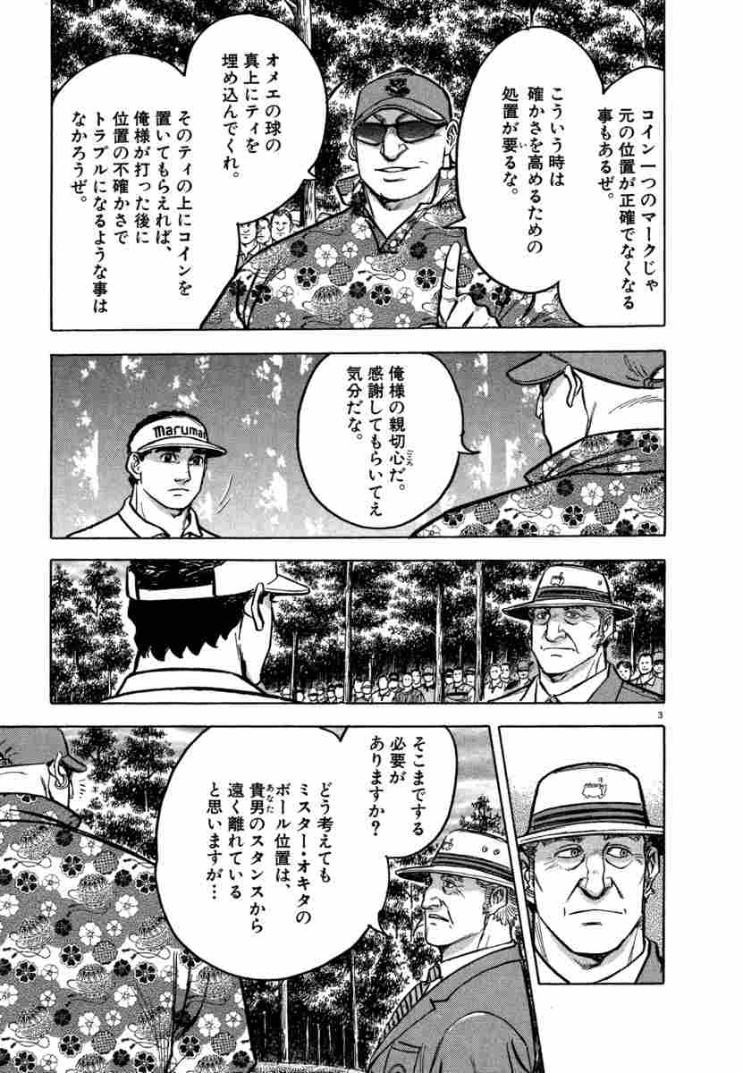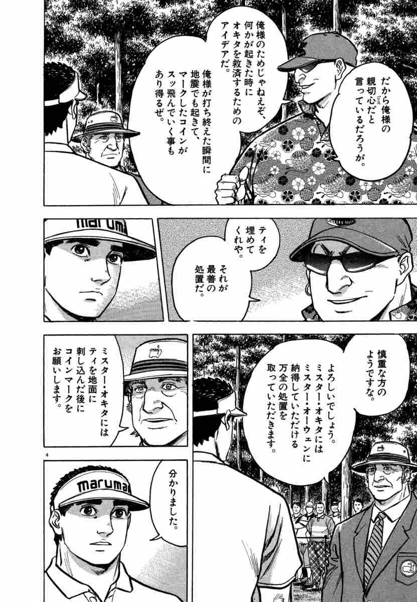 ▼第1話/あるがまま▼第2話/想定外の飛距離▼第3話/101人目の男▼第4話/風の呼吸▼第5話/鹿沼の空▼第6話/左足の歪み▼第7話/怒りの壁▼第8話/地滑り風▼第9話/巨人の限界●主な登場人物/沖田圭介(鹿沼カントリークラブ初のプロゴルファー)、物部麗子(沖田の恋人)、杉山健三(ゴルフクラブの職人)、笠崎(沖田の先輩だが、まだ鹿沼カントリークラブの研修生)、石倉(鹿沼カントリークラブに出入りしているゴルフ好きのオヤジ)、オールド・ジョー(マスターズで沖田と共に出場している黒人の老キャディ)●あらすじ/マスターズ3日目・11番ホール。競技委員の判定に怒りを露わにしながらも、クレッグは“ルール通り”先に打つことを選択した。すると、自分のボールをマークしようとする沖田に、クレッグから不可解な提案が。「球の下にティを埋め込み、その上にコインを置いてくれ」というのである。さらにそれは、「何かが起きた時に沖田を救済するためのアイデア」と語るクレッグだが、その思惑とは一体…!?(第1話)。▼クレッグ・オーウェンの挑発に乗り、歪んだライを修復をせずに放った沖田の第2打。芝生ごと打ち抜かれたボールは、一直線に左のハザード目がけて飛んでゆく……かと思えたその瞬間、回転を取り戻したボールは見事にグリーン方向に向きを変えた。しかし、球速がまったく落ちないままグリーン上に落ちたボールは、弾みながらハザードへと向かい…!?(第2話)●本巻の特徴/マスターズ3日目。ライバルのクレッグが様々な策を弄してくる中、沖田は小針プロから教わった“棒の球”、そして固い絆で結ばれた友の応援と共に、世界の頂点を目指す!
