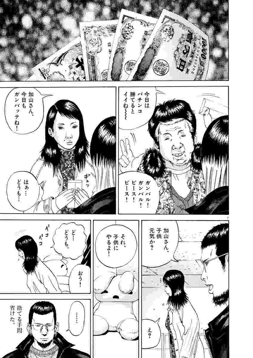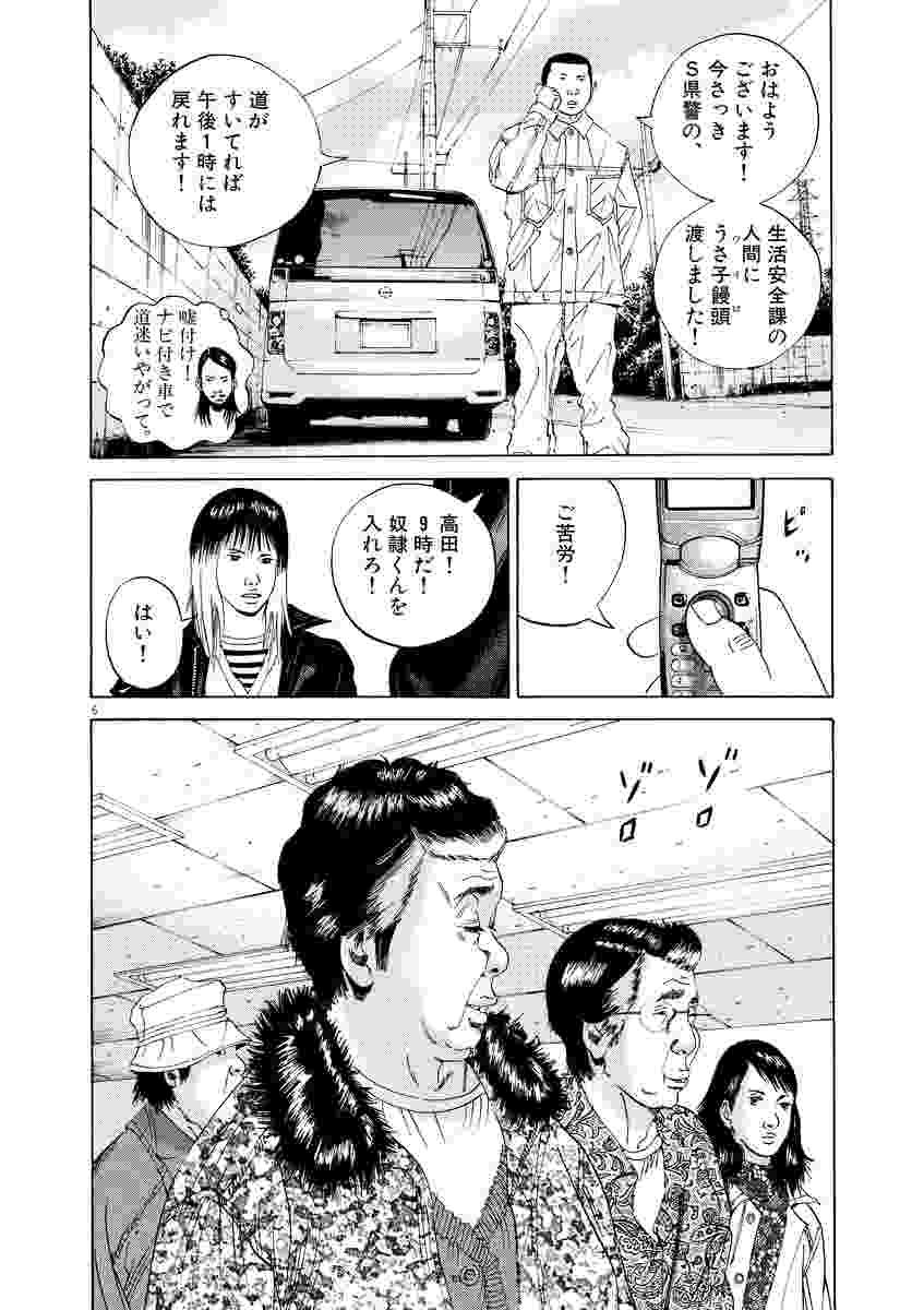 ▼第17話/ヤンキーくんPart.2(6)▼第18話/ヤンキーくんPart.2(7)▼第19話/ヤンキーくんPart.2(8)▼第20話/ヤンキーくんPart.2(9)▼第21話/ヤンキーくんPart.2(10)▼第22話/ヤンキーくんPart.2(11)▼第23話/ヤンキーくんPart.2(12)▼第24話/ゲイくん(1)▼第25話/ゲイくん(2)▼第26話/ゲイくん(3)●主な登場人物/丑嶋(闇金「カウカウファイナンス」社長、23歳)●あらすじ/愛沢から再び200万を恐喝されたマサルは、殺されかかったところを先輩の高田に助けられる。一方、マサルから金を奪うことに失敗した愛沢は、今度は丑嶋に狙いを付けて事務所への張り込みを開始した。そして翌朝、スタンガンやスラッパーで武装した愛沢一味が、事務所から出てきたマサルたちに背後から迫る…!!(第17~18話)●本巻の特徴/丑嶋の売上金をめぐる愛沢、滑皮との三つ巴の戦いがついに完結! 後半からは、ゲイの顧客・ジャニヲタへの新たな取り立てがスタート!!●その他の登場人物/マサル(中卒ニート。愛沢のバイクを大破させ、200万の借金を強要されたのをきっかけに、丑嶋の下で働くことに)、高田(「カウカウファイナンス」の従業員。マサルの教育係)、愛沢(暴走族「愛沢連合」のヘッド)、滑皮(暴力団の幹部候補。愛沢から200万円強請り取ろうとしている) 、ジャニヲタ(丑嶋の客。丑嶋たちに電話で怒鳴ってもらうのが好きな、ジャニーズおたくのゲイ。36歳)