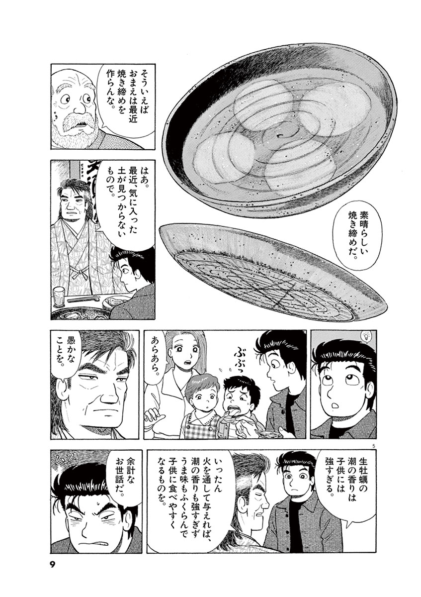 ▼第1話/米の母・牡蠣の母▼第2話/"究極"で名誉挽回▼第3話/父の卵料理▼第4話/魯山人のお茶漬け▼第5話/聖なる素材と料理と仕事▼第6話/"焼き"の深さ▼第7話/海原雄山の湯豆腐▼第8話/究極のスパイ!?▼第9話/茶碗蒸しの記憶●主な登場人物/山岡士郎(東西新聞文化部員。膨大な食の知識を持つ。東西新聞の壮大な企画「究極のメニュー」の作成を担当。ゆう子と結婚し、双子の父に)、山岡ゆう子(旧姓・栗田。東西新聞文化部員。夫の士郎とともに「究極のメニュー」を担当)、海原雄山(超高級料亭「美食倶楽部」を主催する希代の美食家。自分に反抗し家を出た実の息子・士郎を勘当。「至高のメニュー」で対決する)●あらすじ/チヨの甥・笠倉信次は、先祖代々受け継がれた田を耕す農家の青年。だが、台風で収穫直前の稲を全滅させてしまい、金策も立たないことから廃業を考えていた。信次の田を訪れ、おもむろに土を掘り起こした山岡は、この土をある人間に売れば当座の資金になるとアドバイスするが…(第1話)。●本巻の特徴/世界奇術師大会に出ることになったマジシャン・桜野。大会役員から日本独自の奇術を演じてほしいと言われて悩む彼を、山岡はある料理でもてなすことに…。表題作「魯山人のお茶漬け」他、全9話を収録。●その他の登場人物/山岡陽士・遊美(士郎とゆう子の間に生まれた双子)、大原大蔵(東西新聞社社主)、小泉鏡一(東西新聞社取締役編集局長。プライドが高く、自説を曲げない頑固者)、谷村秀夫(東西新聞社編集局次長兼文化部長。温厚な性格で、常に冷静。部下からの人望が厚い)、富井富雄(東西新聞社文化部副部長)