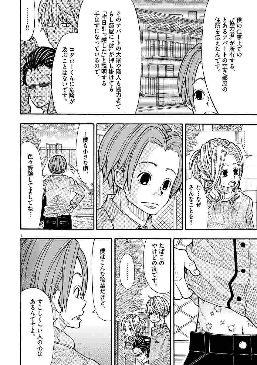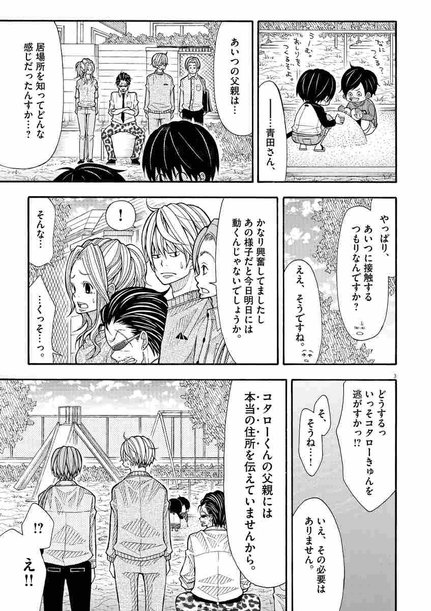 青田はあっという間にコタローと打ち解けて毎日のように行動を共にするようになる。しかし彼の正体は、コタローの父親から”コタローの居場所を突き止めてほしい”という依頼を受けてやってきた探偵だった。このままコタローの居場所は、父親にバレてしまうのか・・・!?