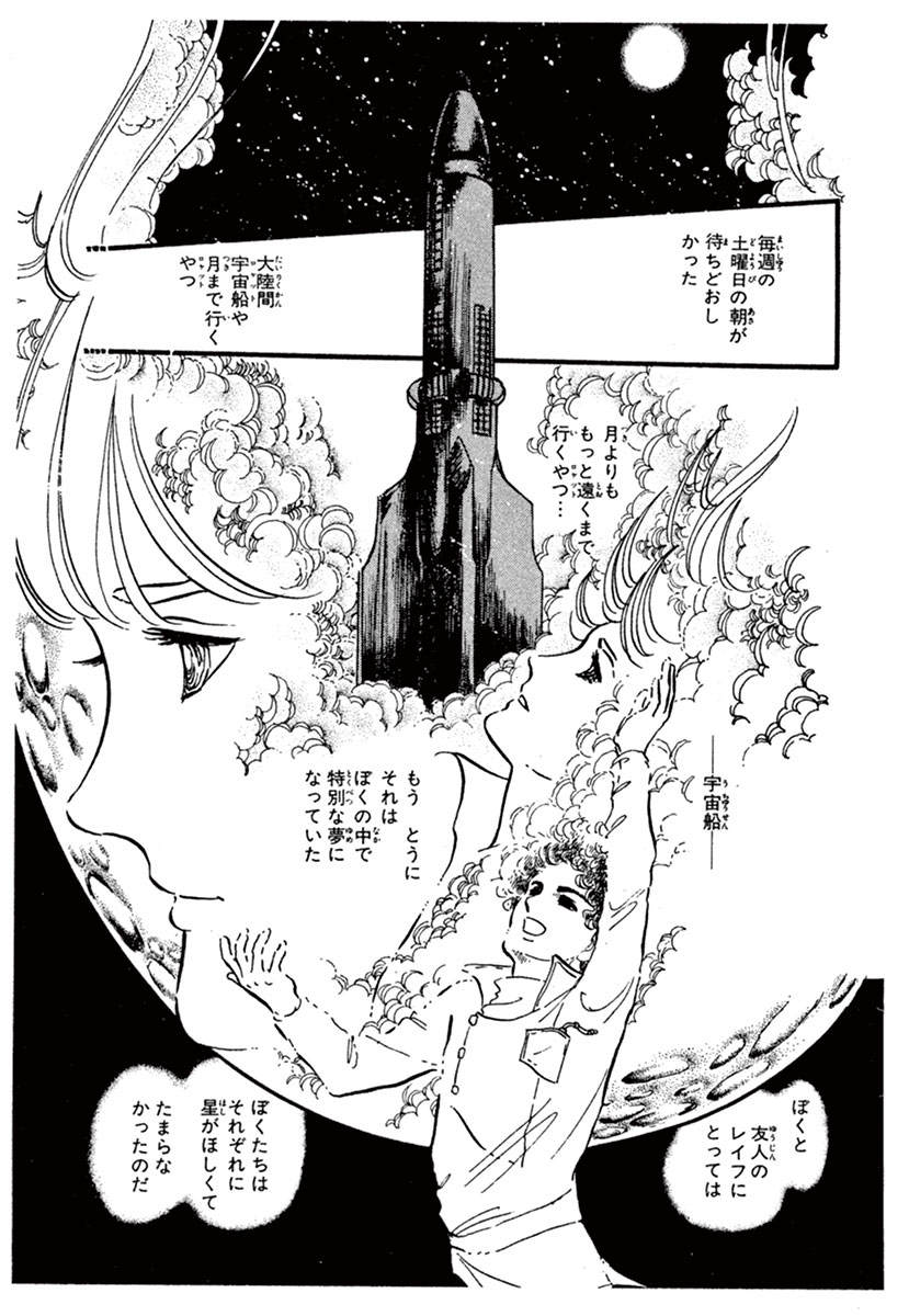 ブラッドベリ原作、珠玉のSFポエジー ぼくたちはロケットが大好きだった。土曜日の朝の宇宙空港、爆音とともに大空へ消えゆく光点。いつかあのロケットで星の海を渡っていくことを、ぼくたちはずっと夢みていたのだった …。少年たちの宇宙への憧れに満ちた表題作をはじめ、深海の闇にまどろむ恐竜を100万年の時を越えてよびさます「霧笛」、万聖説の宵は妖魔たちの饗宴「集会」など、レイ・ブラッドベリの傑作短編を萩尾望都が描く、珠玉のSFポエジー全8編。