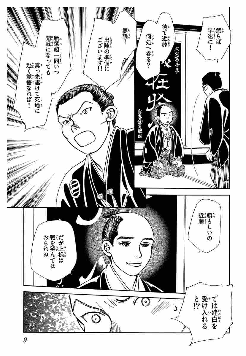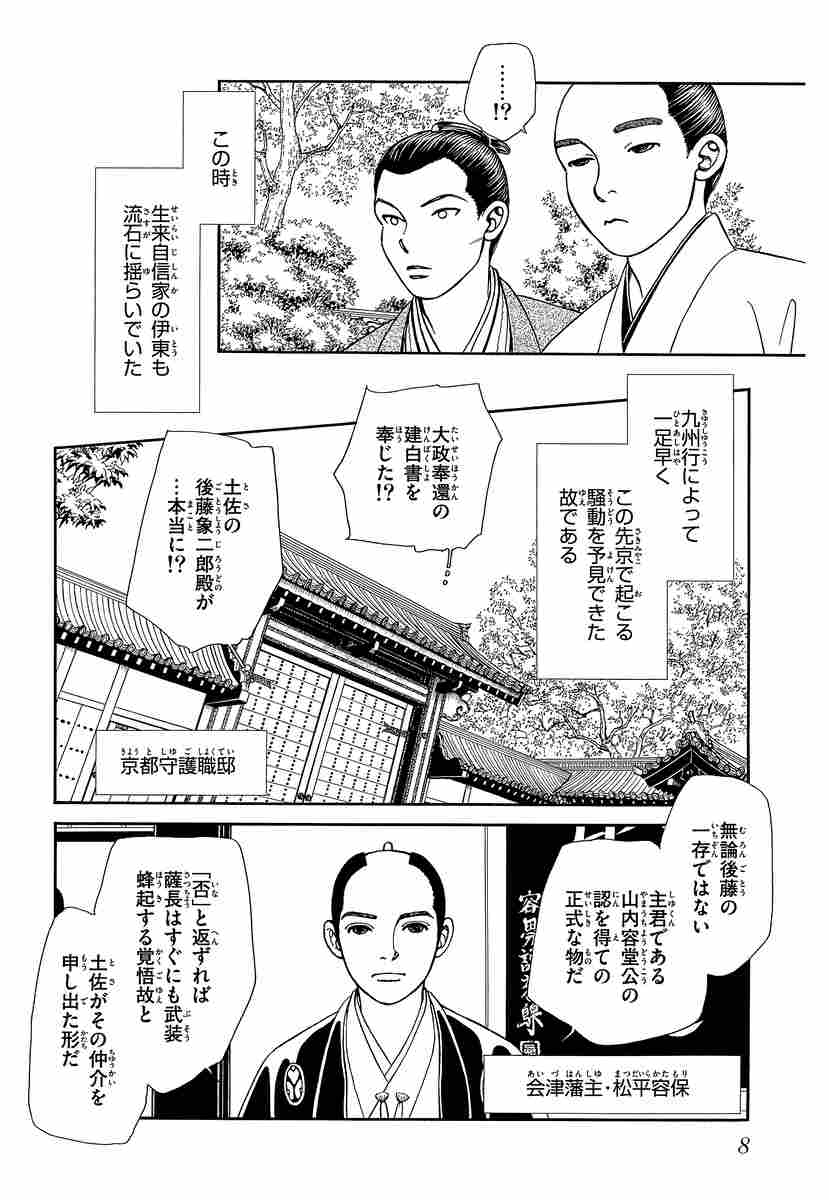 大政奉還、龍馬暗殺。そして伊東がついに! 労咳を発症した沖田のため、セイは医学を学びながら看病に全力を尽くす。二人が療養に専念する間に、倒幕派の動きはますます過激化。土佐藩は「大政奉還」を建白し、政権を朝廷に返上せよと幕府にせまり、長州は出兵準備を進め、薩摩は将軍・慶喜討伐の勅命を求め朝廷内の反幕勢力に手を回していた。