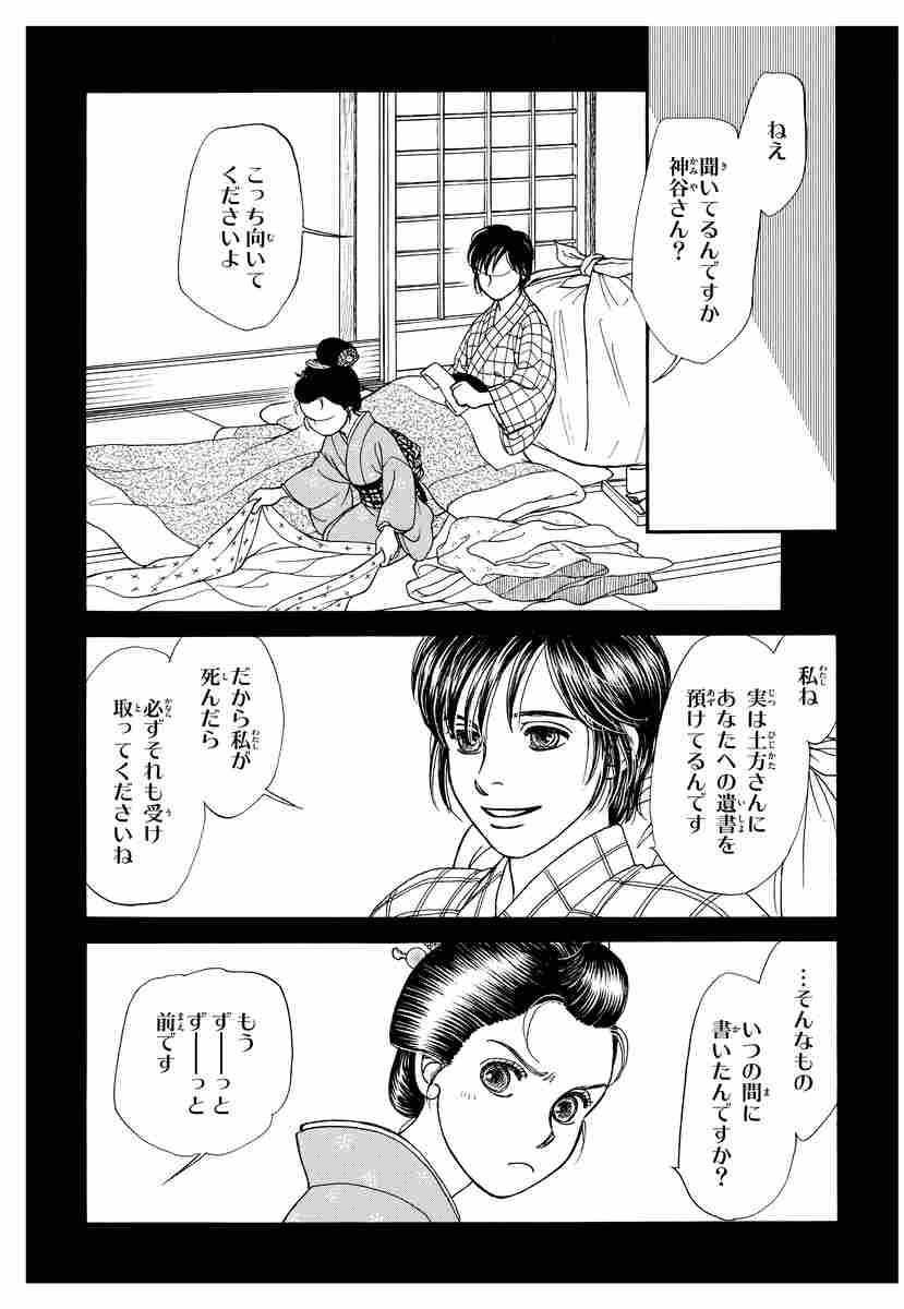 戦場から離れて暮らす沖田とセイは夫婦の約束を交わすが、その一か月後、沖田は息を引き取る。遺されたセイは、沖田の遺言を受け、土方の元に向かおうとするが…?