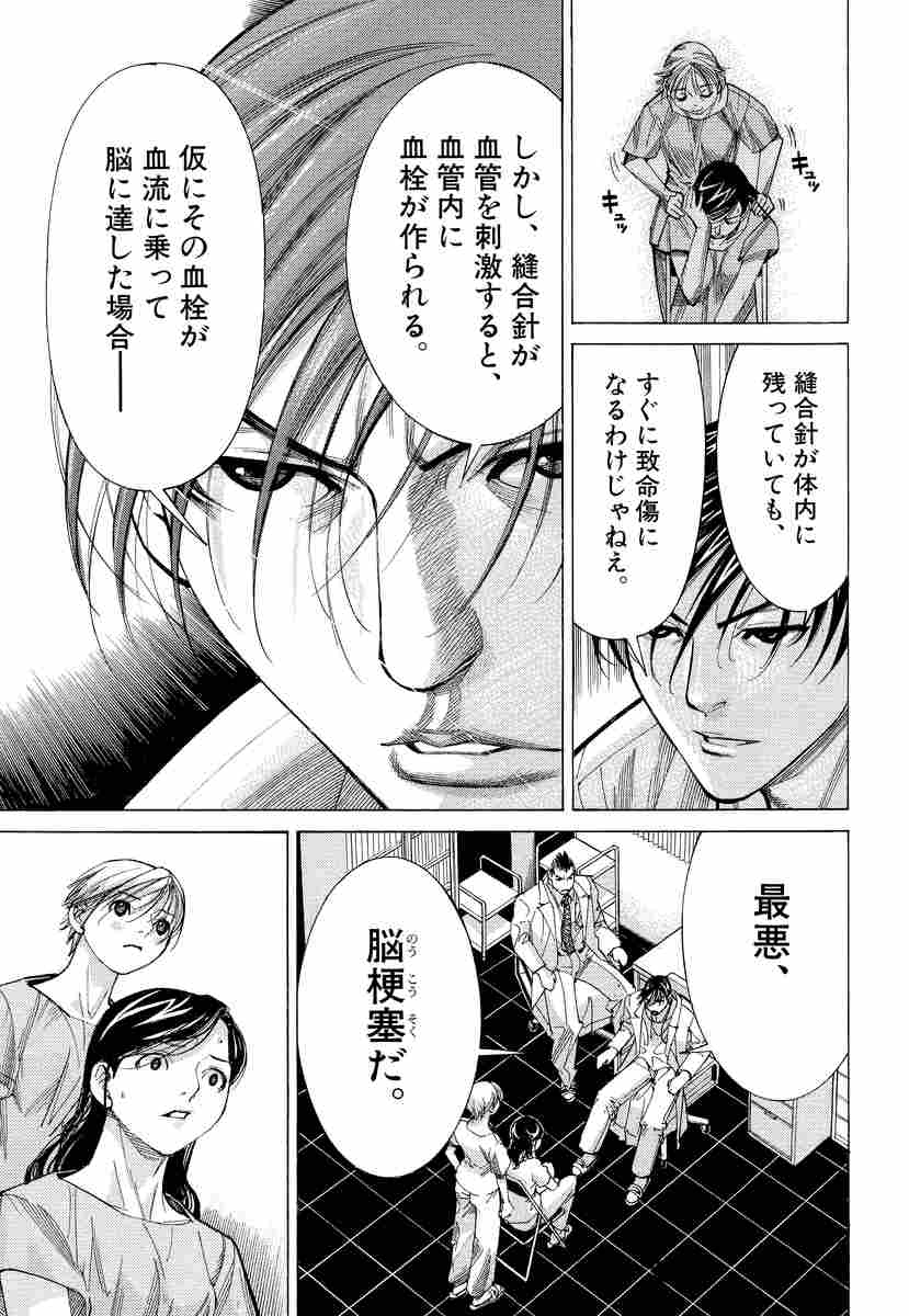 天才麻酔医とのタッグで朝田の真の実力が! 明真大病院で、医療ミスが隠蔽されていた。ミスの内容は、心臓手術の際、患者の体内に縫合針を置き忘れたというもの。執刀医の児玉は、野口教授と木原助手の指示のもと、その事実を患者に隠蔽し、もう後戻りはできなくなっていた…。一方、2例目のバチスタ手術を控えた3日前、過去に傷を持つ天才麻酔医・荒瀬をチームに加入させた朝田だったが…その夜、例の手術時のオペ看が意を決してやってきたものだから―――!! また、この事件の余波を受け、胸部心臓外科の教授(ボス)・野口は、医局を改革すると宣言。その意味するところは、バチスタ手術前の加藤を奈落の底に叩き落とすものだった!!?