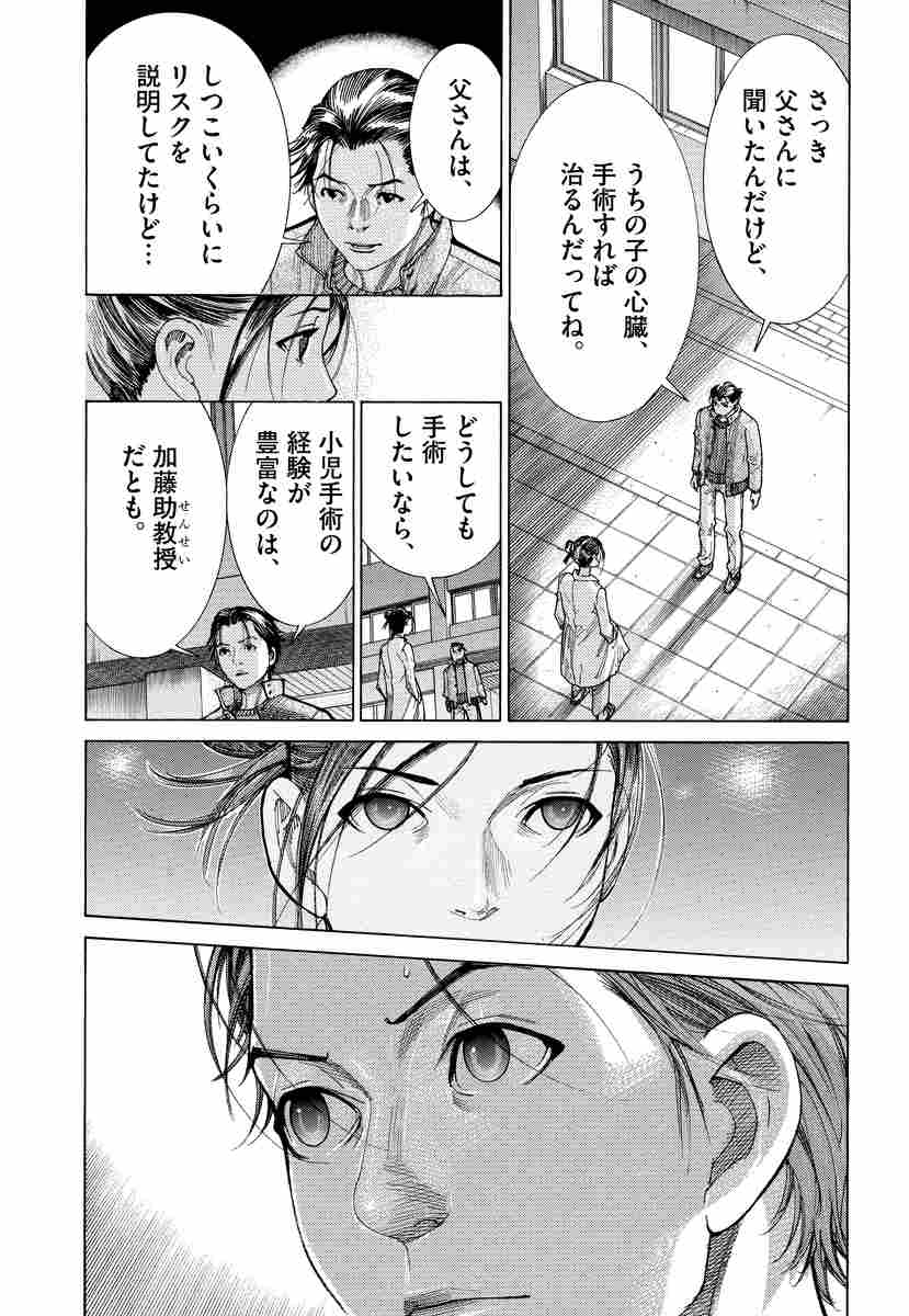 それで、僕・野口は満足できる?… 不慮の事故で、心臓に肋骨が突き刺さり、緊急オペとなった妊婦――明真大胸部心臓外科・野口教授の義理娘であり、その夫・野口の息子は加藤のかつての恋人であった…!! ところが、胎児の心臓にも先天異常が認められ、想定外の難手術となる。執刀医の井坂は、野口教授の命により、胎児を見捨てて母体を優先させようとするが…妊婦の意思は赤ちゃんを優先して欲しいと。そこに加藤が現れ、母胎と胎児の双方を救おうとする。困惑する井坂だったが、加藤に従い自分は助手に回る。朝田の好サポートもあり、手術は無事成功し、母子共に命は守られた。この出来事を機に、女を捨てたと思われていた加藤が新たな選挙公約を掲げ、次期教授選の潮流を掴みかけた――と思いきや、野口が最後の牙を見せる!!?