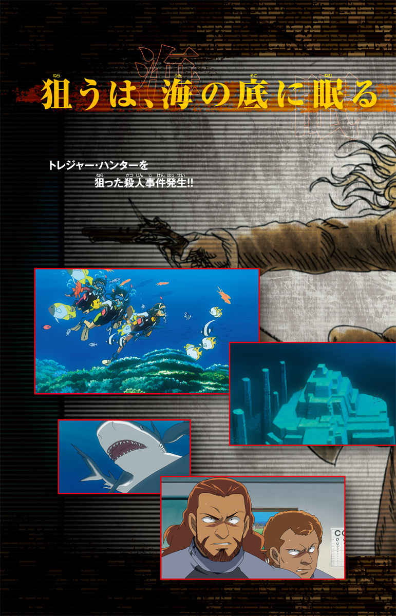 コナンたちが宝探しゲームを楽しんでいるうちに、トレジャーハンターを狙った殺人事件が発生。別の事件を追っていた目黒警部たちも合流して捜査が始まった。