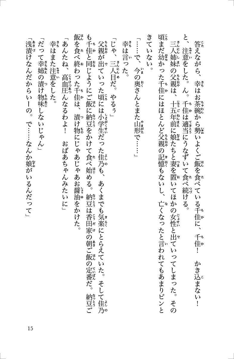 両親を許せない長女、姉の幸せを願う次女、父を知らない三女、自分を許せない四女。それぞれの想いを抱え、四人が本当の家族になるまでの一年間の物語。