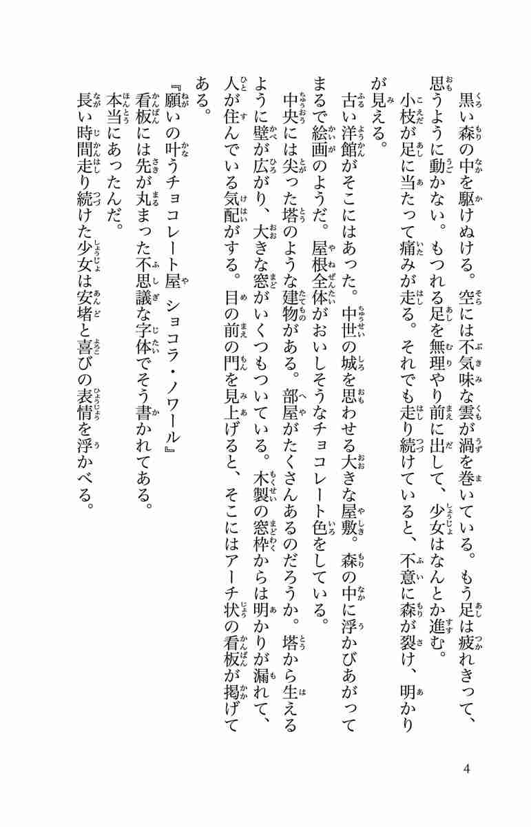 そんな伊織がたどり着いたのは、「願いが叶うチョコレート屋ショコラノワール」。チョコレートの魔女・哀川ショコラの館だった…。
