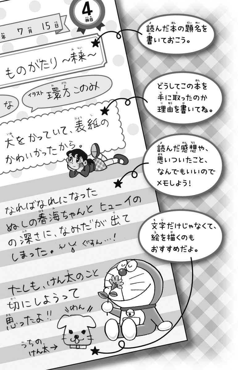 ドラえもんがあなたの読書を応援します! 読んだ本の題名や感想を記録しておくためのノートです。