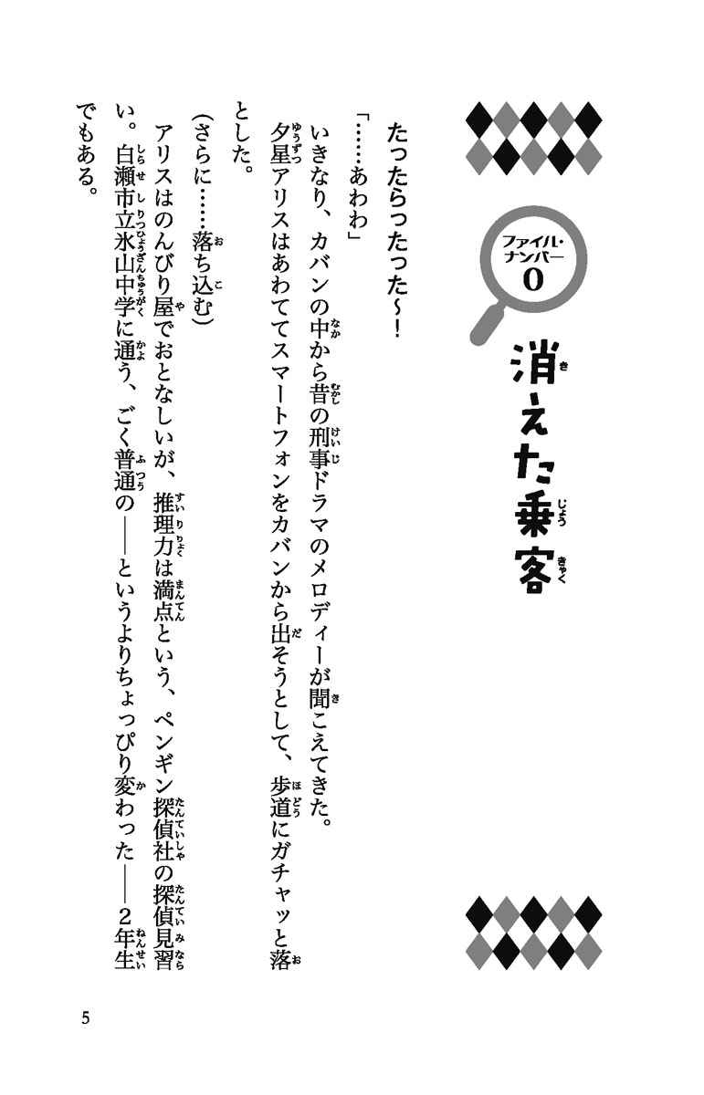 超人気シリーズの最新刊! オール2の見事な成績表をもらい落ち込むアリス。でも明日からは夏休み! ということでクラスメイトで超セレブのリリカから、海の別荘に招待されることに。ししょー(ペンギン探偵!)と少年探偵シュヴァリエ、白兎計太とともに『トロピカル・エクスプレス』で旅をするが、変装が得意な連続窃盗犯パピヨンが列車内で逃げ出すという事件に巻き込まれてしまう!……別荘では「夜の百物語」や「海賊と謎の秘宝」事件もあり、アリス&ペンギンは真夏も華麗に事件に遭遇!!