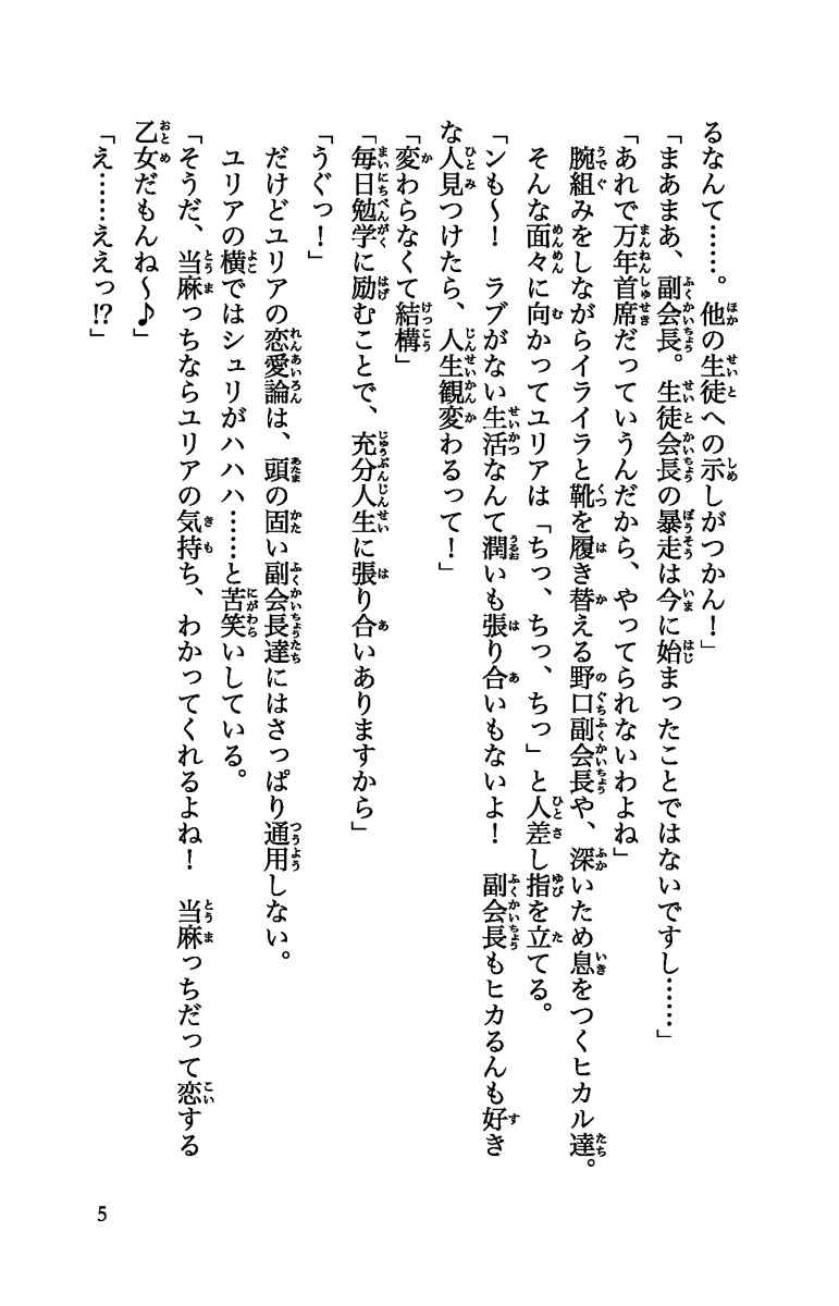 「ちゃお」の大人気漫画ノベライズ第4弾! 選び抜かれた優秀な生徒だけが入学できる、有名エリート校・オメガ高校。一に勉強、二に勉強。三・四が予習で五が復習。なんて厳しい学校の生徒会長を務めるのは、超自由奔放で超天才の相川ユリア。「ちゃお」で大人気のコミックが、オリジナルストーリーで小説化! エリがさらわれ、ユリアたち生徒会メンバーが脱出ゲームに挑む!第一話『緊急指令! 愛の迷宮から脱出せよ!』閉園寸前の動物園をユリアが救う!? 第二話『守れ! 夢の動物王国!!』シュリとユリアが過去へ! 第三話『運命のタイムスリップ!』の豪華三本立て!