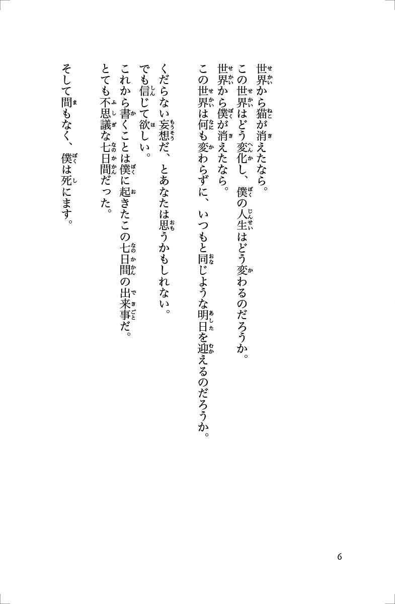 感涙のベストセラー、ジュニア文庫で登場! 郵便配達員として働く三十歳の僕。ちょっと映画オタク。猫とふたり暮らし。そんな僕がある日突然、脳腫瘍で余命わずかであることを宣告される。絶望的な気分で家に帰ってくると、自分とまったく同じ姿をした男が待っていた。その男は自分が悪魔だと言い、奇妙な取引を持ちかけてくる。