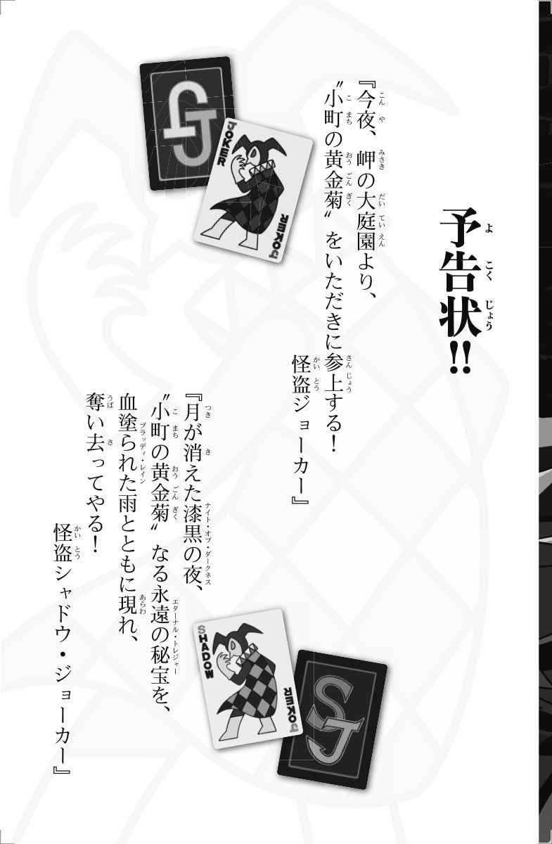 ジョーカーを追う鬼山刑事や車椅子の高校生探偵・速水京太郎も巻き込んで、お宝をめぐる大勝負。シャドウの妹・ローズ、クイーン、ダーク・アイなど女の子怪盗たちも大活躍するミラクル活劇、開幕です!