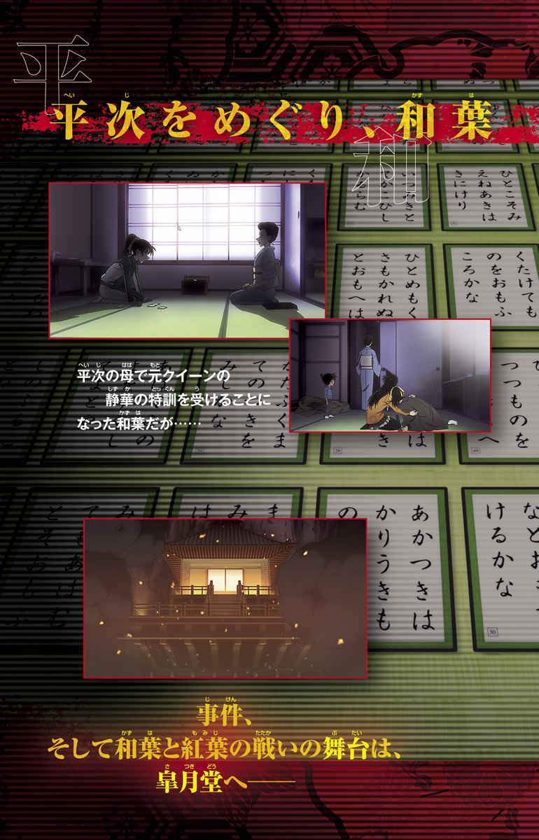 劇場版名探偵コナン最新作を最速ノベライズ 百人一首界を牽引する京都の「皐月会」。その会長との対談のために大阪のテレビ局までやって来た毛利小五郎とコナンたち一行は、平次の婚約者だと言い張る女性と出会う。彼女は競技かるたの高校生チャンピオン・大岡紅葉。子供の頃に平次と約束したと言うが!? そこへテレビ局の爆破予告が届き避難するコナンたち。しかし、崩れゆくビルに平次と和葉が残されてしまう。コナンの機転で脱出に成功するも、時を同じくして、京都では皐月杯の優勝者・矢島が殺されていた!?
