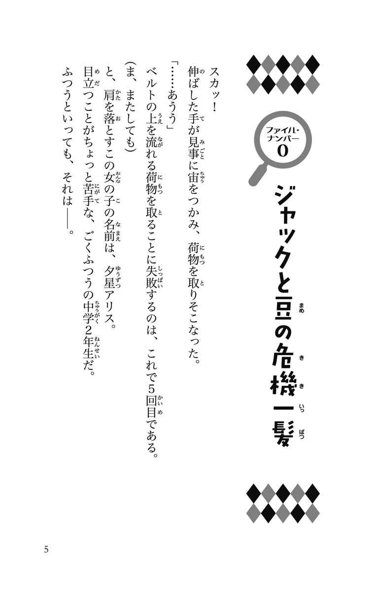アリスに恋の事件依頼が!? 怪盗赤ずきんから、学園祭への招待を受けたアリスとししょーは、クラスメイト碇山憩の兄・ジャックの生物研究所に行くことに。そこには人魚の茉莉音と、犯罪界のプリンス「グリム・ブラザーズ」もいた! なんでもジャックの遺伝子研究はとても価値のあるもので狙っているらしい。だけどその貴重な研究用の豆が発芽して、巨大な豆の木が研究所を空高く押し上げてしまい!? 他に「白雪と毒リンゴ」事件や「アリババと恋」事件も!今回は博士(ドクター)アリスで華麗に解決!