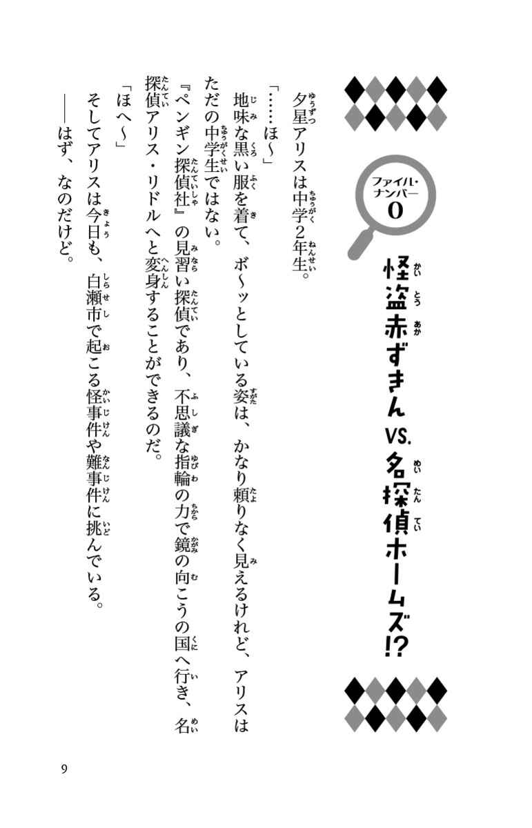 大人気アリ&ペンシリーズ11巻! 怪盗赤ずきんを捕まえるために、イギリスから日本にきた探偵シャーリー・ホームズ。赤ずきんは、アリスの同級生で超セレブのリリカの家から青い宝石を盗むため、怪盗くろにゃんこに協力を依頼してきて!? そのほか『消えた騎士』事件や、シャーリーと京都観光中、犯罪界のプリンス「グリム・ブラザーズ」の弟・ウィルに出会い、かぐや姫と名乗る王女さまの護衛をしたりで…! ペンギン探偵社ロンドン支部からの探偵の登場に、大波乱です!