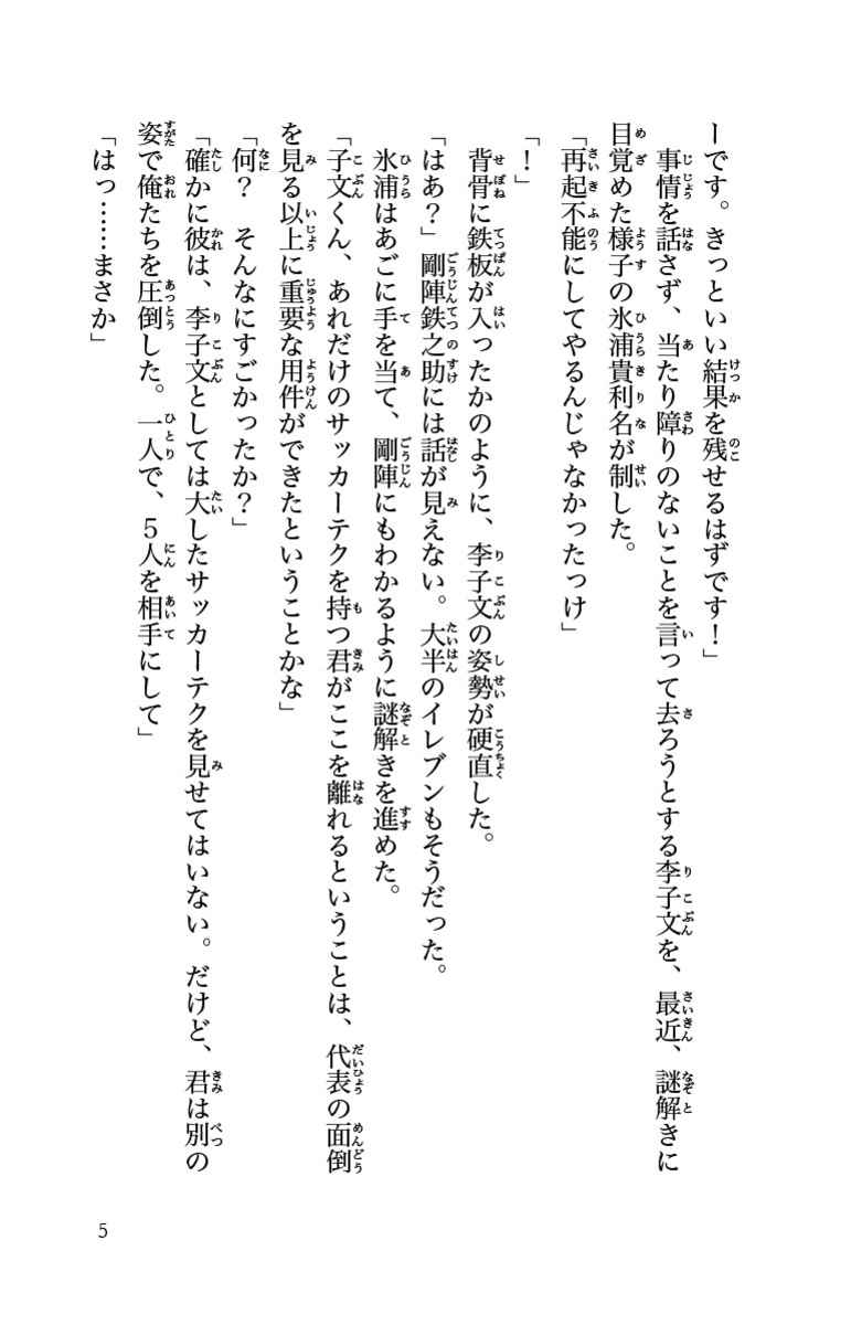 と、趙金雲監督の子分、李子分だった!! さらに、趙監督は謎の病気を理由に日本チームを離脱、なぜだか別名で中国チームのコーチに就任することに・・・・・・。日本チームは圧倒的な力を持つ中国に勝てるのか!? そして、サッカーを徹底的に管理するために、日本の勝利を阻もうとするオリオン財団が企てる、新たな策謀とは・・・・・・!?