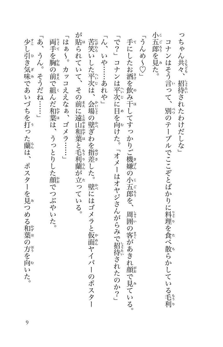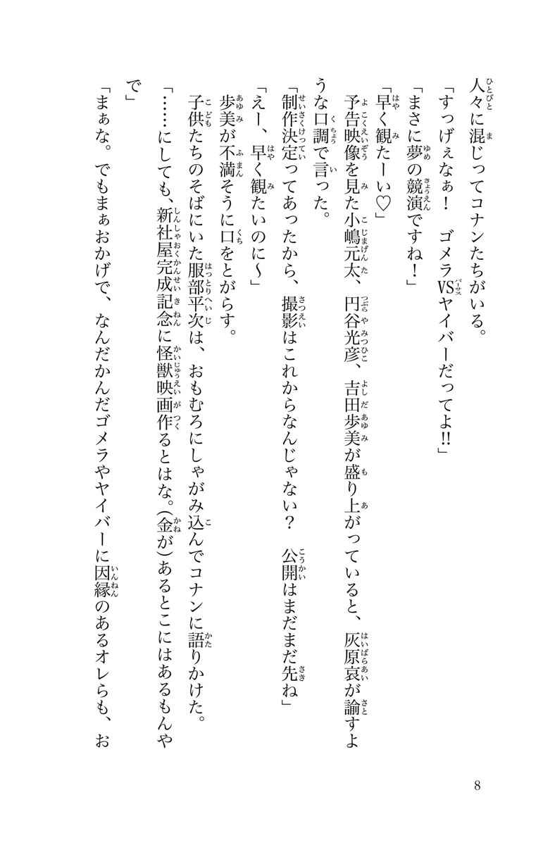 撮影用のゴメラ人形が置かれている倉庫でプロデューサーの米倉が遺体となって発見される。警察は他殺と考え、その場で犯人とおぼしき人物を追求するが、容疑者は米倉の車を使って逃走。しかし、途中で車はなぜか爆発し・・・・・・。大阪と京都を舞台に、複数の殺人事件が大きな渦となってコナン達を巻き込んでいく。2020年1月4週連続放送のTVアニメをノベライズ!