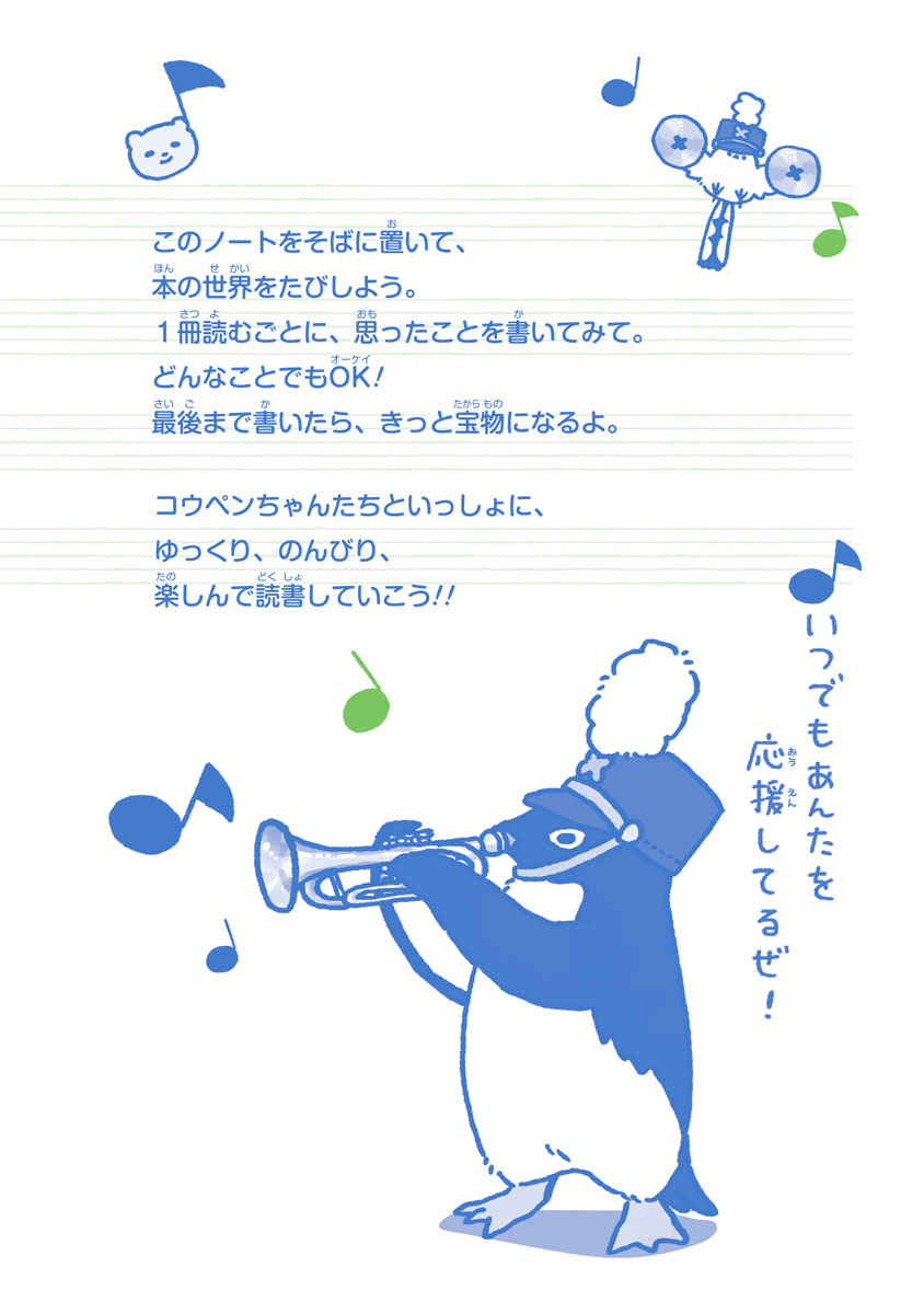 コウペンちゃんとそのお友だちが、あなたをほめて、癒やして、読書を応援してくれるノートです。