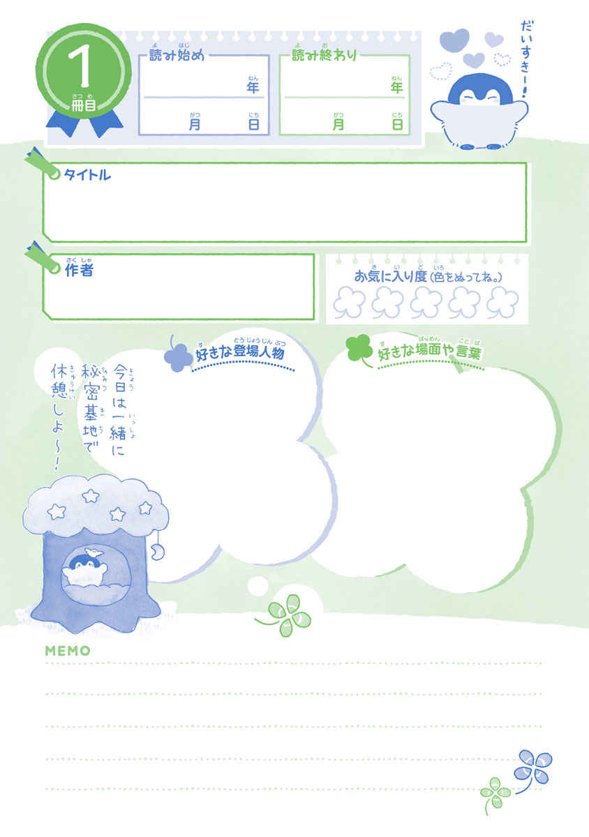 お子さんだけでなく、楽しく読書記録をつけたい大人の方にも是非使っていただきたい1冊です。