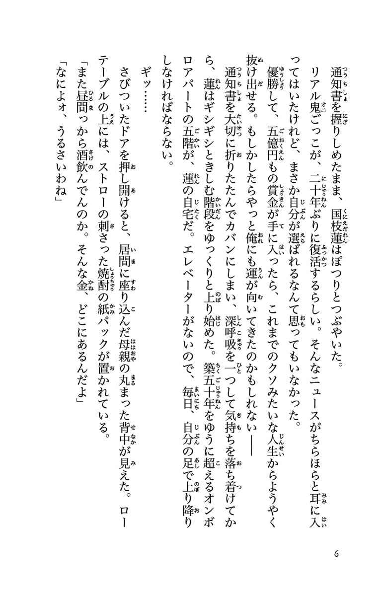 国枝蓮は母と二人暮らしで貧しく、絵を描くことだけを生きがいにしていた。そんな蓮のもとに、「リアル鬼ごっこ」の招待状が届く。優勝賞金は5億。