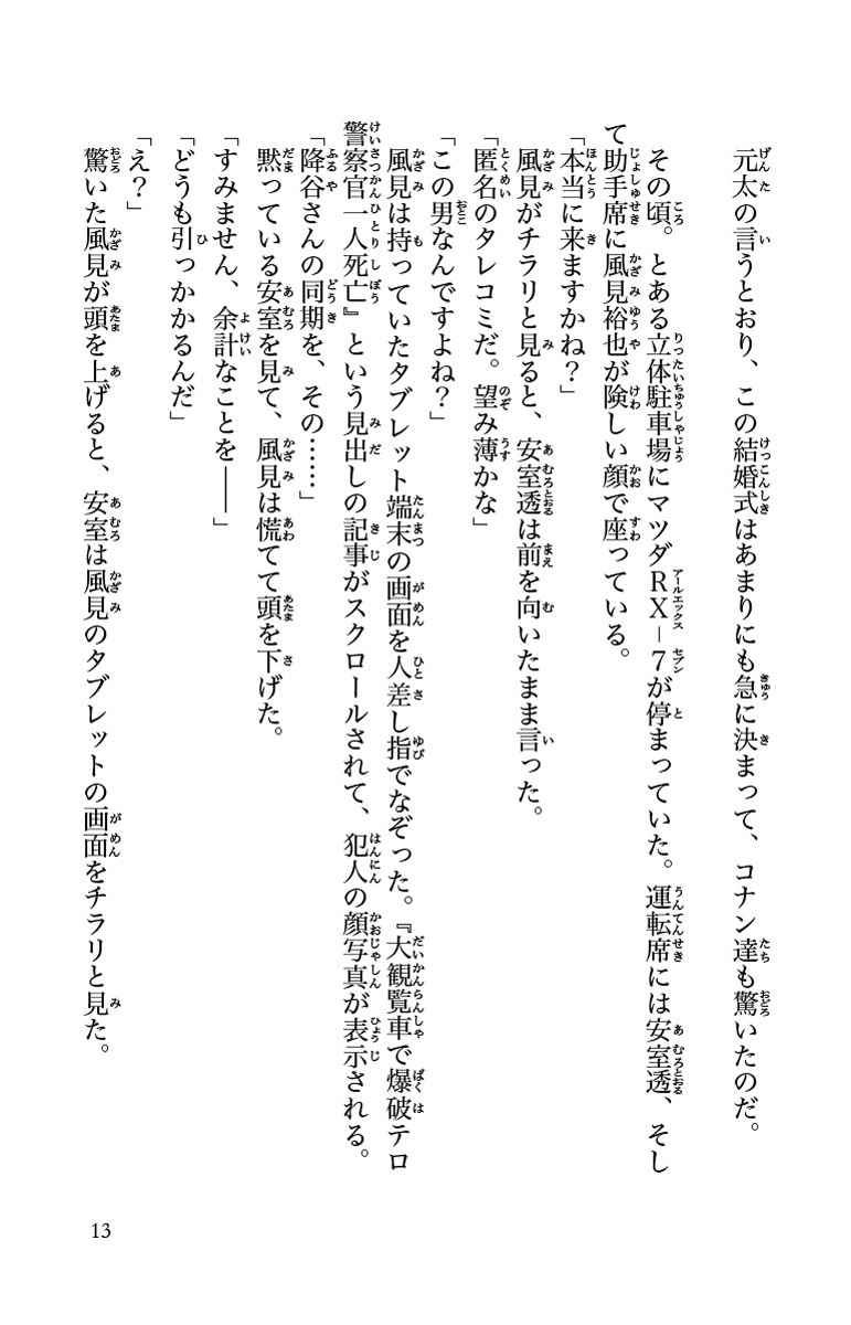 同じころ、その事件の犯人が脱獄。安室透が追いつめたが、何者かに首輪爆弾をつけられてしまう。首輪爆弾解除のために安室が潜伏するシェルターを訪れたコナンは、松田をはじめ警察学校の同期たちが三年前に爆弾犯「プラーミヤ」と遭遇した話を聞き、捜査をはじめるが……。
