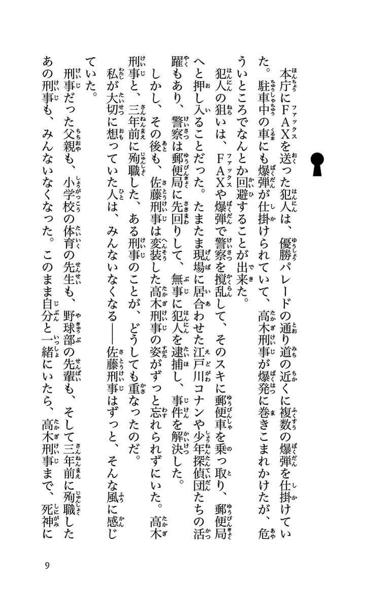 佐藤刑事&高木刑事の活躍が読める! 11月7日、警察に爆弾を仕掛けたという予告電話が入った。7年前と3年前にも同じ日に爆破事件が起り、そして佐藤刑事と行動をともにしていた松田刑事が殉職した日でもある。因縁の日を巡り、警察とコナンが暗号を解き明かし、爆弾解除に動き出す。だが高木刑事とコナンが爆弾と共に、エレベーターに閉じ込められてしまい――!? 警察公認(?)カップルの佐藤刑事&高木刑事の過去、そしてラブも楽しめる、スペシャルセレクション!!