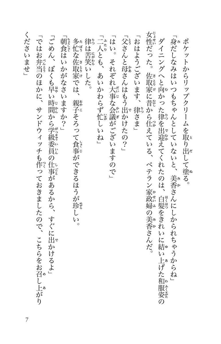 人に知られてはいけない秘密を持つものどうしの二人だけれど、ヴァンパイアの悠真はしだいに律の血が欲しくなり!? 一方、律は何かと自分を助けてくれる悠真の優しさにひかれていくが・・・・・・。