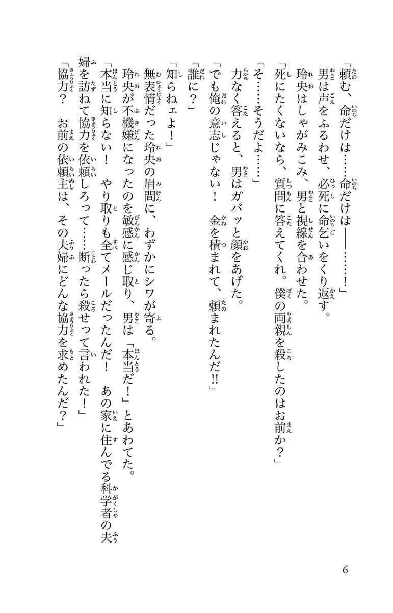 その計画のキーパーソンである科学者の両親を殺された玲央は、黒幕に復讐するため、従兄弟で相棒の清人とリアル鬼ごっこに参加する。