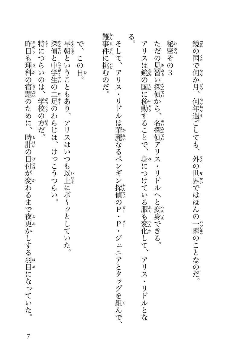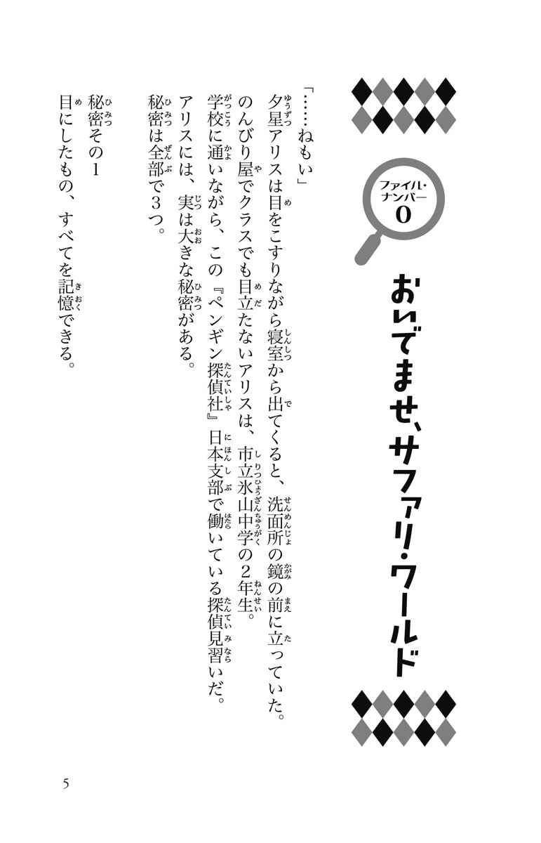 今回の舞台はデンジャラスなサファリ! ペンギンの探偵、P・P・ジュニアの助手として同居しているアリス。今回やってきた依頼人は何とビーバー! アリスの同級生のスーパーセレブ、赤妃リリカが建設中の「赤妃・エキサイティング・サファリ・ワールド」で建設を担当しているビーバーたちが次々に姿を消していると聞き、みんなで向かったサファリではデンジャラスな動物たちがあらわれて――!?