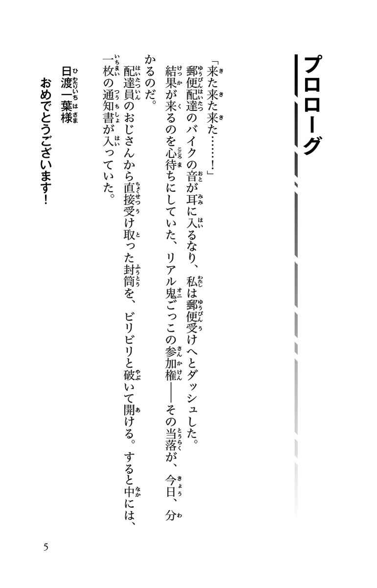 大人気シリーズ、最新刊発売! 賞金5億円のゲーム「リアル鬼ごっこ」に当選した、日渡一葉。