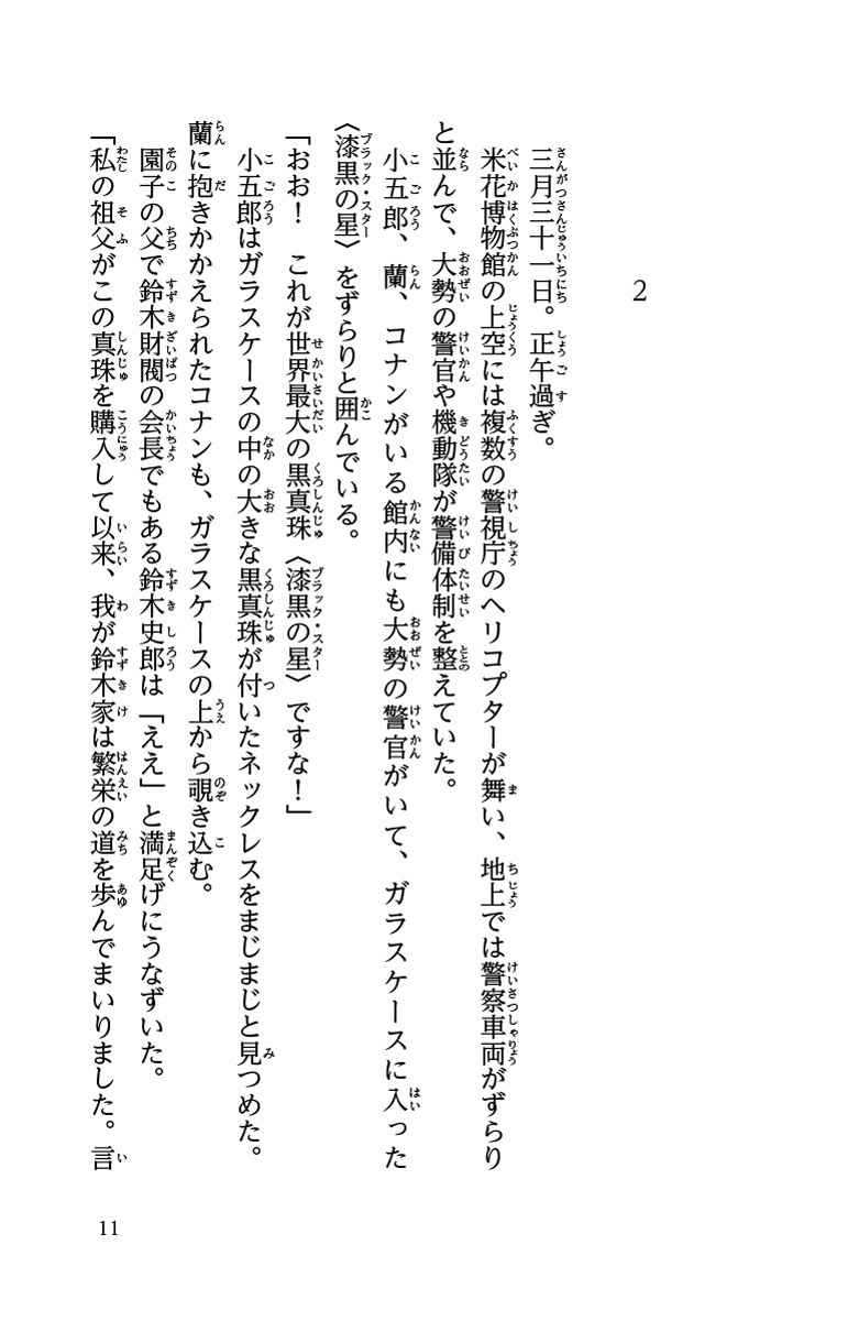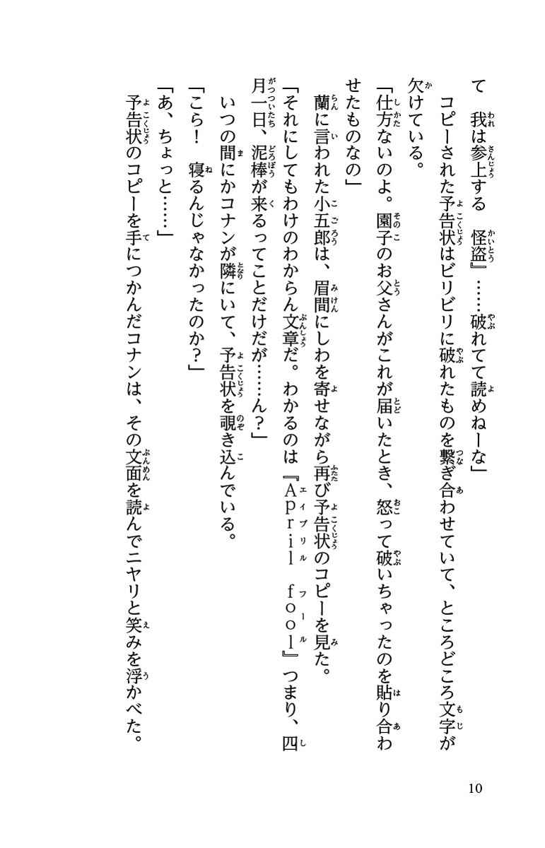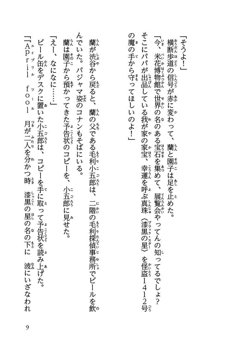 コナンとキッドの出会いと因縁の対決を描く 4月の劇場版最新作先駆けて2024年1月5日に公開されるTVアニメ総集編をノベライズ。怪盗1412号(怪盗キッド)から鈴木園子の父に、米花博物館にある世界最大の黒真珠「漆黒の星」を狙う予告状が届いた。決行の日は4月1日。園子から依頼をうけた小五郎の側でコナンは予告状を盗み見る。そこで、怪盗1412号の暗号文を解読し準備を進めるが・・・。一方、怪盗キッドは決行前の東都タワー展望台で、かつてピンチに陥った時計台の怪盗仕事を思い出していた。実はその現場にはコナンになる前の工藤新一が駆けつけていて・・・。キッドとコナン、二人の初めての出会いとプライドを賭けた戦いを描く総集編!