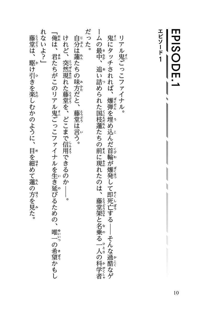 執拗に追いかけてくる鬼から逃げながら、最後に勝ち残るのは誰だ!? そしてリアル鬼ごっこの真実とは――。
