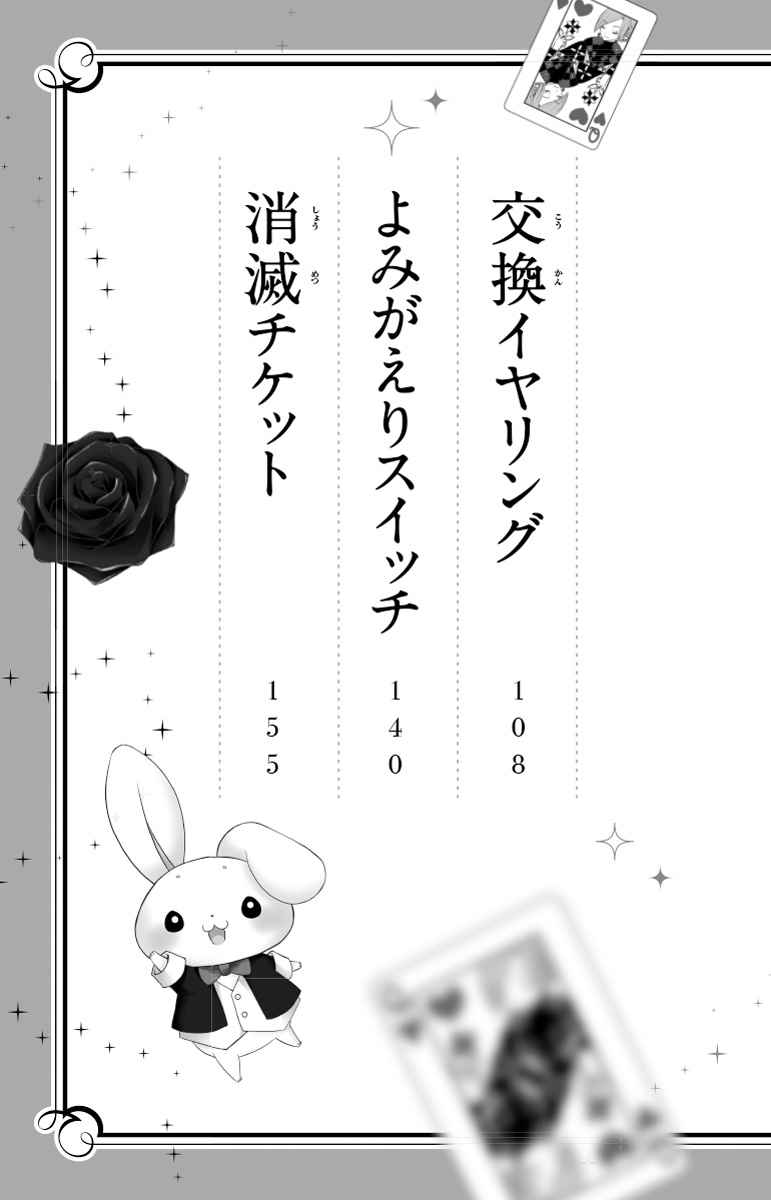 「身代わり人形」「理想ドール」「よいこポイント」「交換イヤリング」「よみがえりスイッチ」「消滅チケット」の6つのエピソードを集めた、ちょっと怖い物語集。
