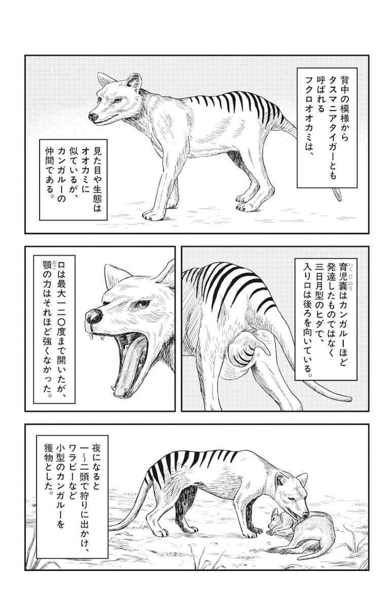 「フクロオオカミ」 オーストラリアのタスマニア島に生息していた、大型肉食獣。1936年に絶滅。