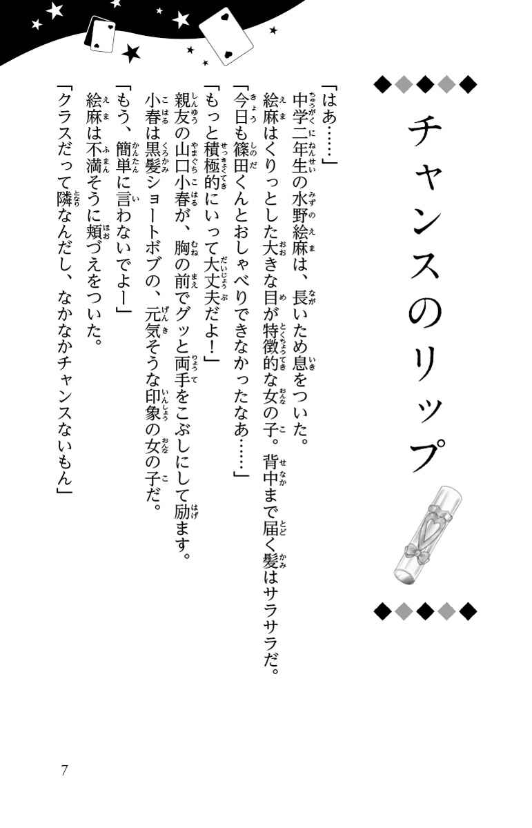 「チャンスのリップ」で、好きな男の子との距離を縮めようとする絵麻、