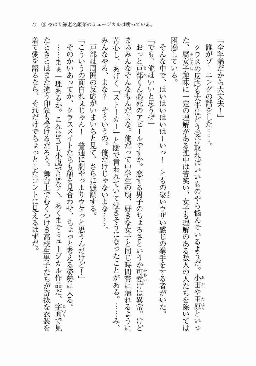 新学期が始まってからの八幡は、どこか調子がおかしい。クラスでも、部活でも。雪乃への疑問は消えないまま、そしてそれを問わないまま……学校中が祭の準備で浮かれた空気の中、取り残されているのが当たり前のはずの八幡なのに、居心地の悪さは消えない。
