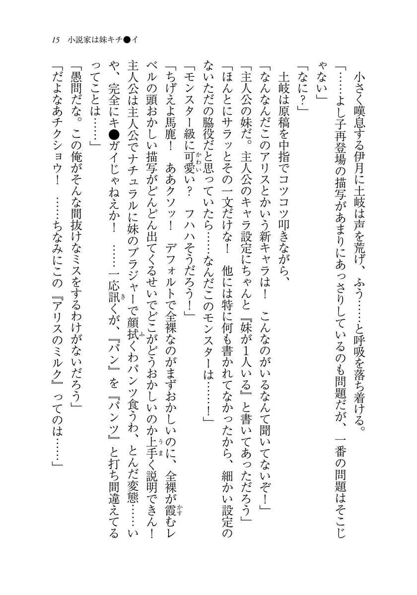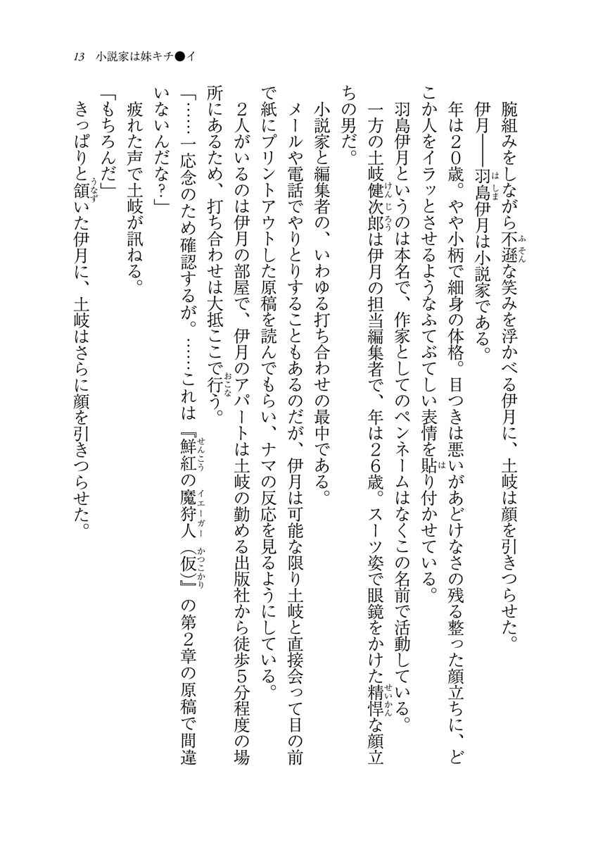 荒ぶる小説家・羽島伊月は、未だ見ぬ究極の妹を創造すべく日夜奮闘する現代のピグマリオンである。彼の周りには、作家やイラストレーターや編集者や税理士など個性的な人々が集まっている。愛も才能もヘビー級、残念系美少女のハイエンド・可児那由多。恋に悩み友情に悩み夢に悩む青春三冠王・白川京。闘志を秘めたイケメン王子、不破春斗。人生ナメてる系天才イラストレーター・ぷりけつ。頼れるけど頼りたくない鬼畜税金セーバー・大野アシュリー。闇を抱えた編集者・土岐健次郎――。