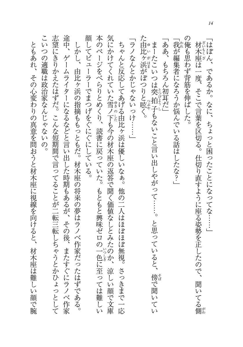 アニメ2期放送直前!冬の日常を描く短編集 雪乃、結衣と過ごすおなじみ奉仕部での活動から、小町の受験を心配したり、いろはのわがままに振り回されたり、さらには男子からのあるお願い事まで舞い込み……!? 八幡の短くも慌ただしい冬の日常を描く短編集。
