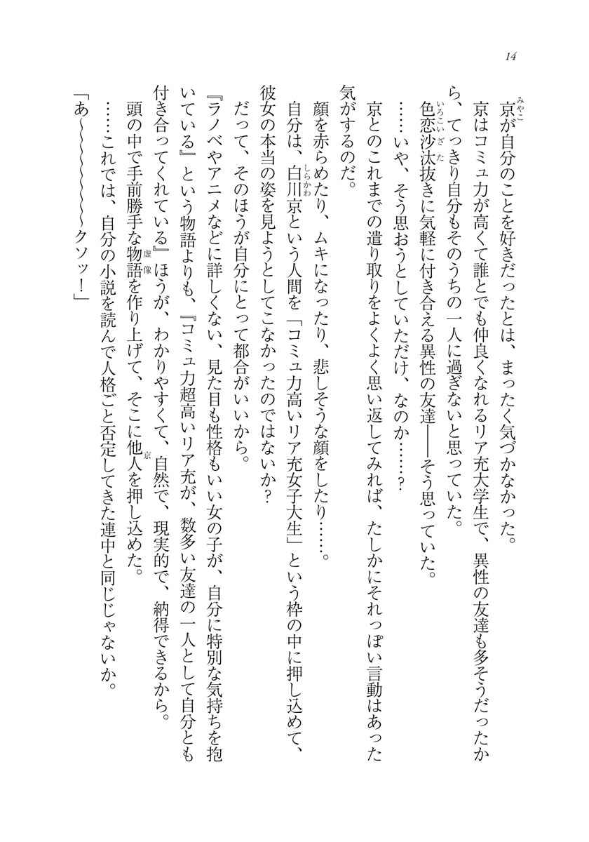 可児那由多、本気出す。 告白ひとつで人間関係が一変してしまうほど、彼ら彼女らは子供ではない。けれども、心は確実に変化する。心の変化は物語に新たな潮流を作り出し、登場人物たちを否応なく巻き込んでいく。それとは関係なく、アニメ化という荒波もまた伊月を容赦なく押し流す。さらにはGF文庫にも、新しい作家たちが登場する。新展開、新人、新しい仕事、新しい日常。それはそうとぷりけつは相変わらず千年に一人のケツを持つ少女を追い求めていた。そんな彼にも大きな変化が……!?同じようで変わりゆく、青春ラブコメ群像劇第6弾!!