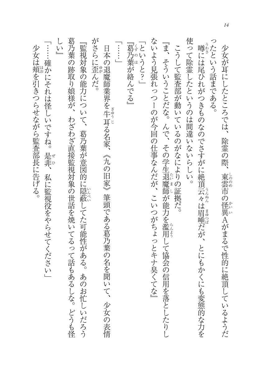 乳避け女をしりぞけ、無事に退魔師の仮免許を取得することができた古屋晴久、宗谷美咲、烏丸葵の3人。