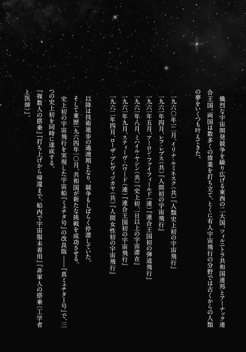 そんな中、レフの同期であるミハイルとローザが結婚するというニュースが飛び込む。しかしそれは、停滞気味の宇宙開発を隠蔽したい政府によって仕組まれた強制結婚。憤るレフとイリナだが、さらなる理不尽が彼らを待ち受けていて……。