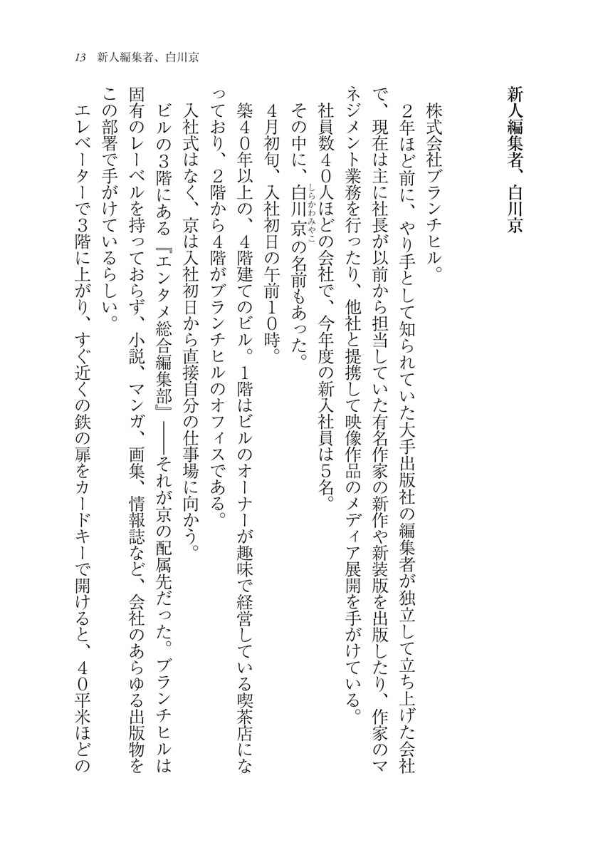 そして、新しい日常が始まる。 冬が終わり、季節は春。主人公達はそれぞれ、新しい一歩を踏み出していた。新シリーズを発表した不破春斗。出版社ブランチヒルに入社し、ついにプロの編集者となった白川京。大学のTRPGサークルでオタサーの姫と化した羽島千尋。そして10万文字のラブレターによって何かを掴んだ伊月は、今度こそ本物の主人公になるべく精力的に小説を書き続けていた。ゲームして旅行して酒を飲み、仕事して、恋をする。同じようで変わりゆく、新しい日常が幕を開けた。大人気青春ラブコメ群像劇、いよいよ最終章――前編!!