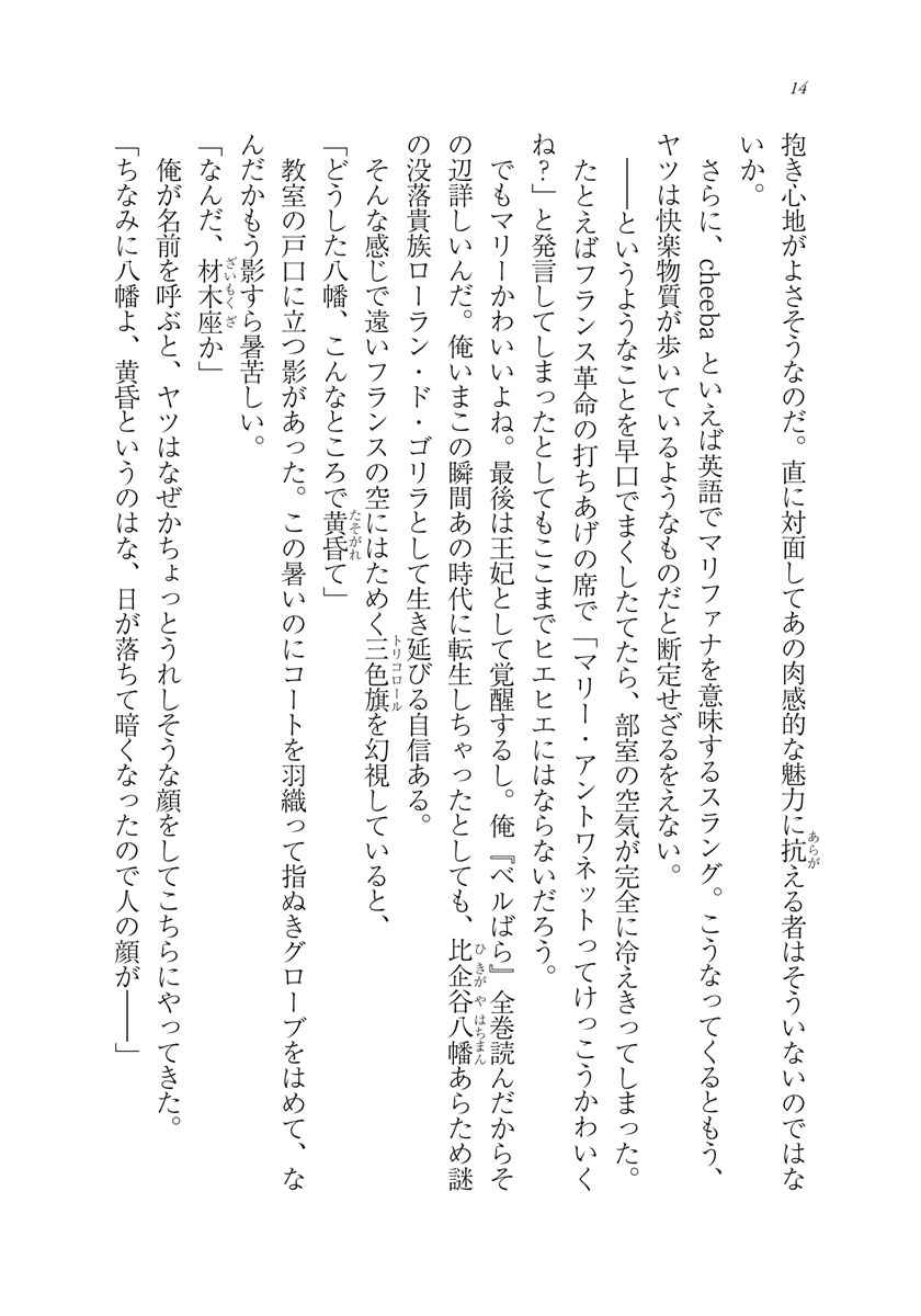 小説:石川博品(「先生とそのお布団」「海辺の病院で彼女と話した幾つかのこと 」など)、さがら 総(「変態王子と笑わない猫。」「教え子に脅迫されるのは犯罪ですか?」など)、天津 向(「芸人ディスティネーション」「クズと天使の二週目生活」など)、水沢 夢(「俺、ツインテールになります。」「ふぉーくーるあふたー」など)、裕時悠示(「俺の彼女と幼なじみが修羅場すぎる」「29とJK」など)